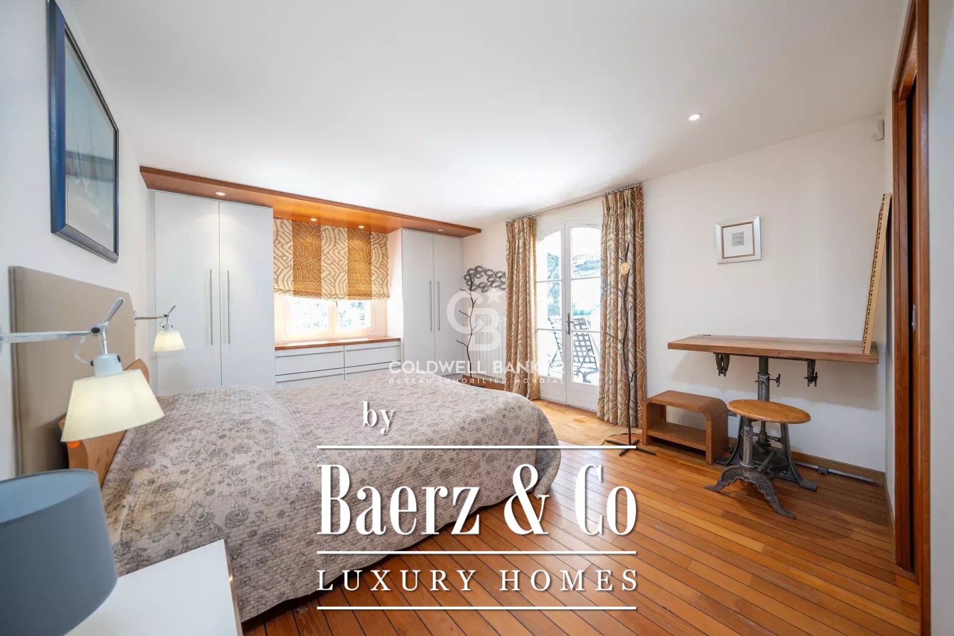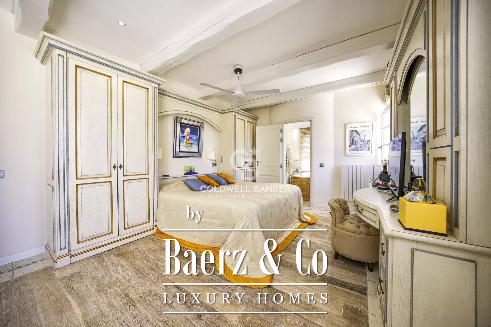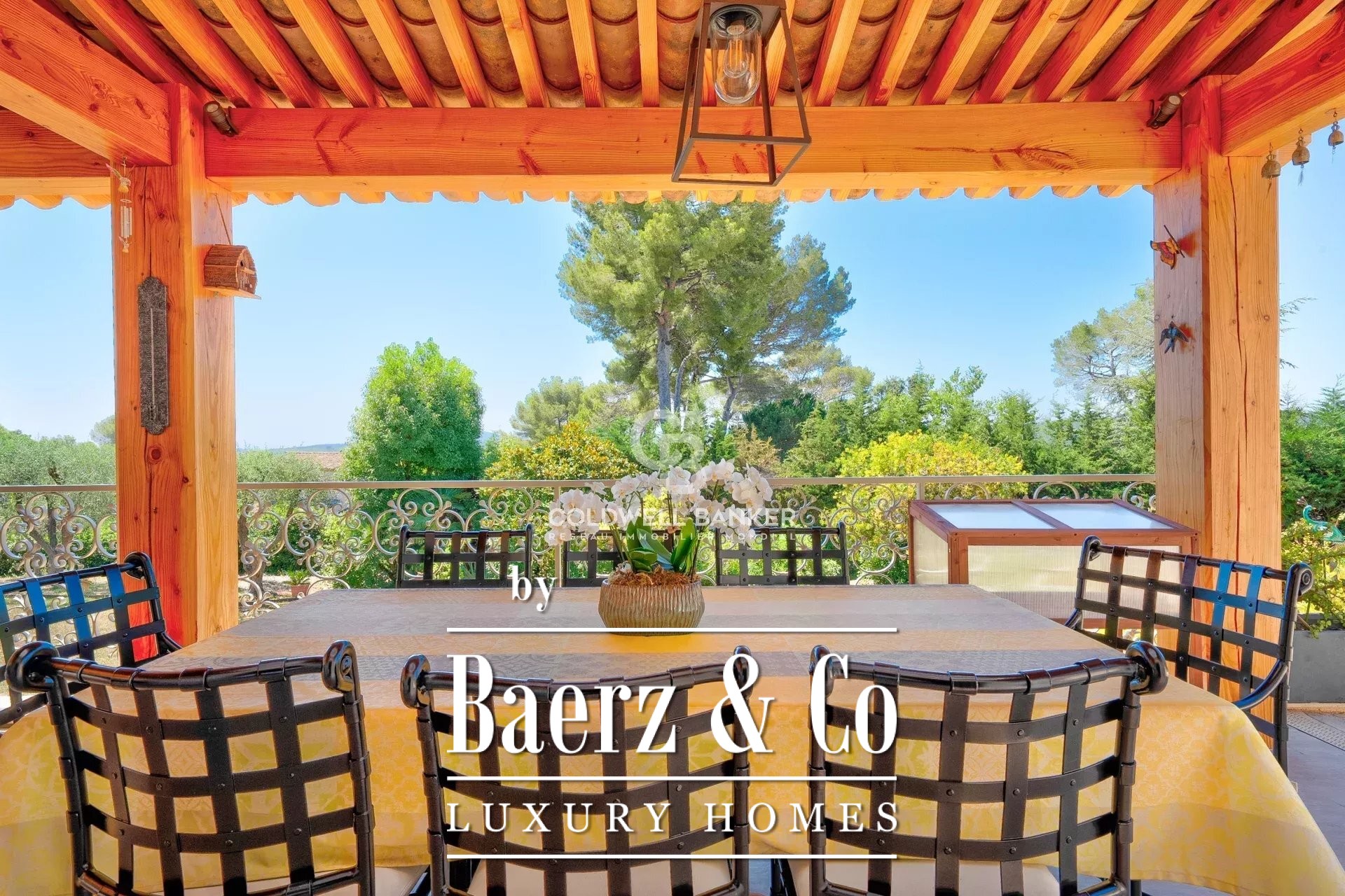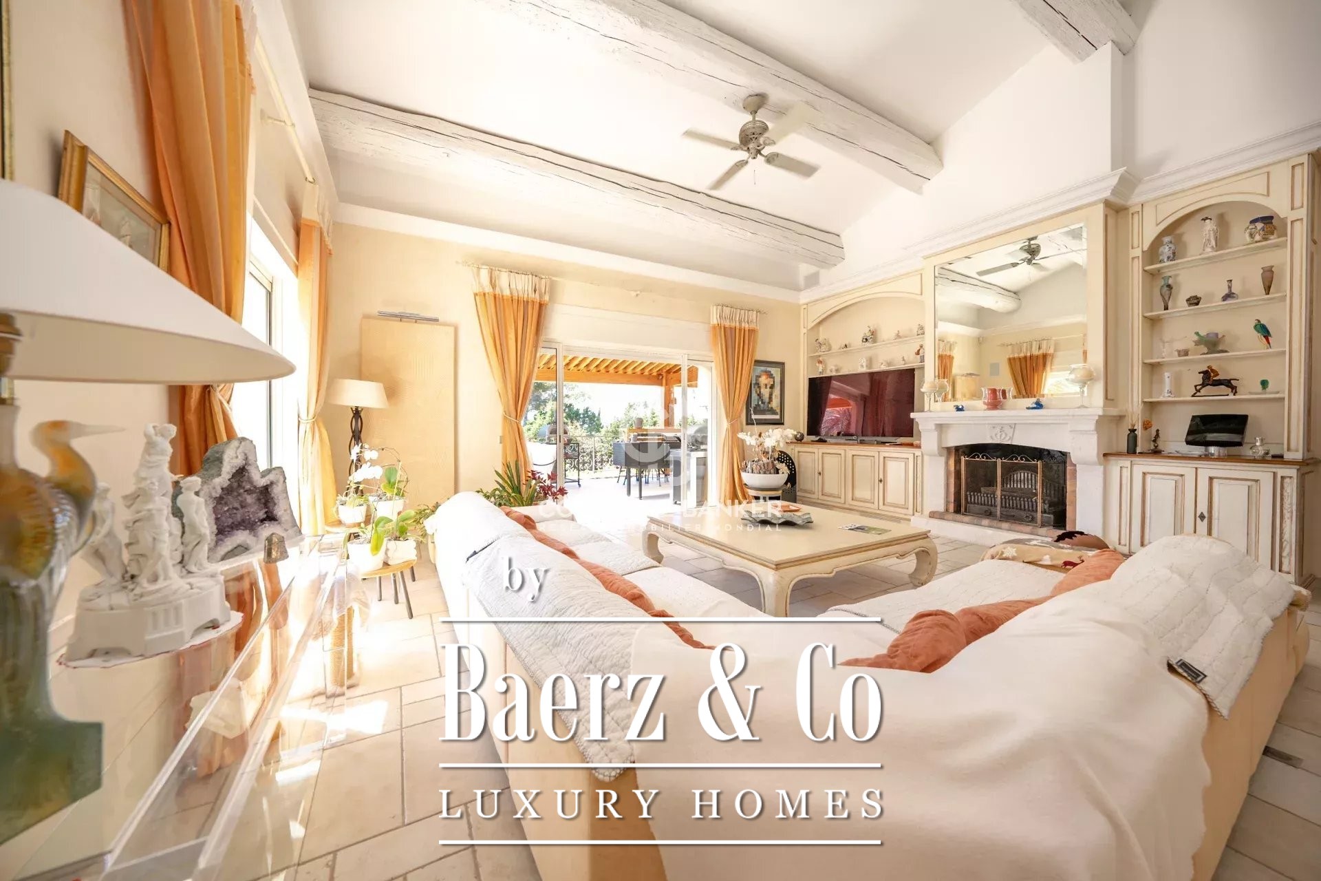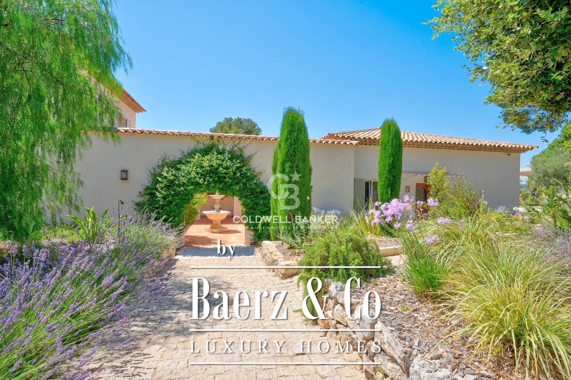 Property Valbonne with panoramic sea and hills views stands in a quiet, preserved enclave, capturing the essence of refined living on the Côte d’Azur. Composed of a main villa and two independent apartments, this 555 m² residence welcomes you through a tranquil patio with fountain, guiding you into expansive interiors defined by natural light and authenticity.