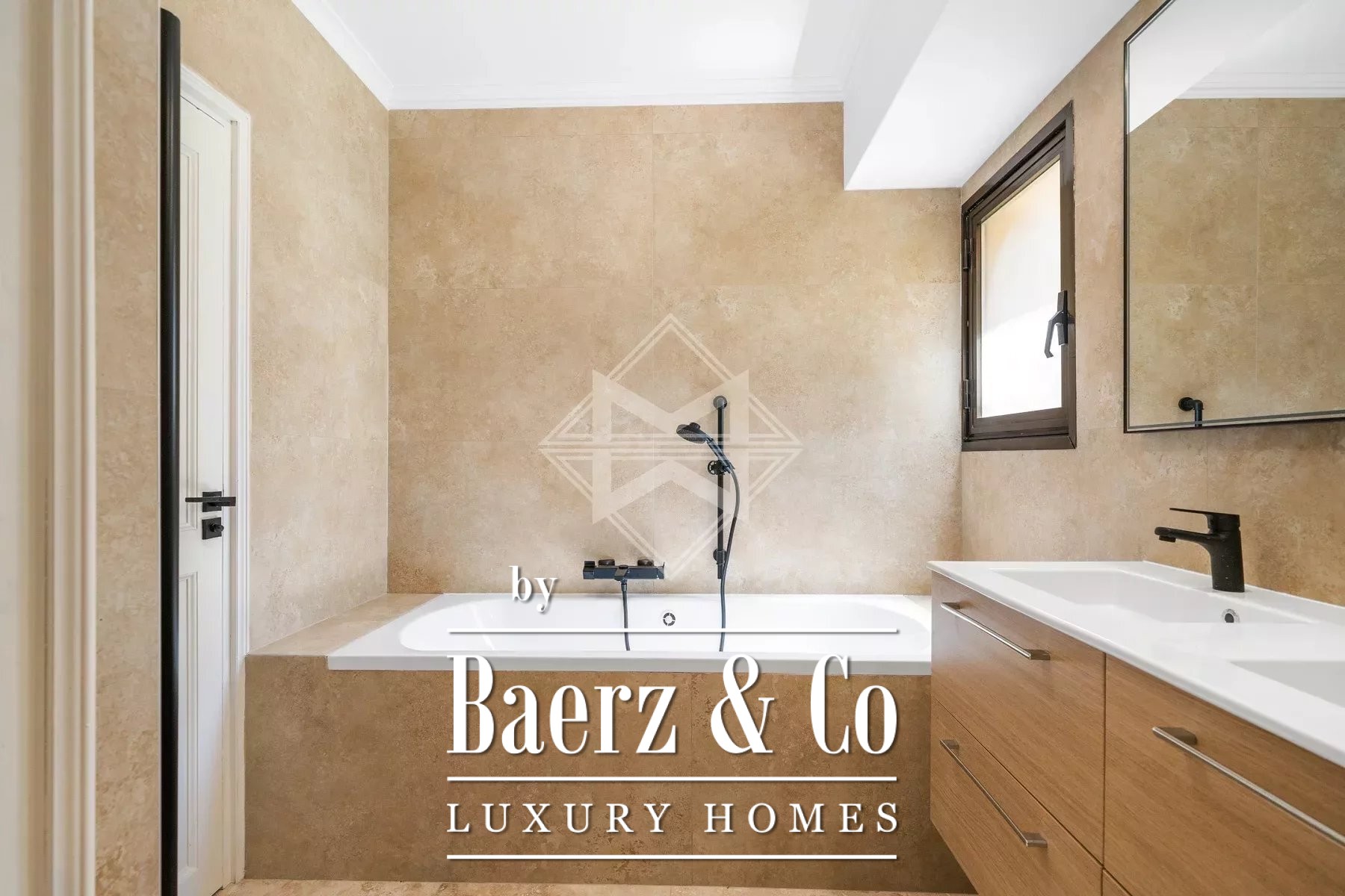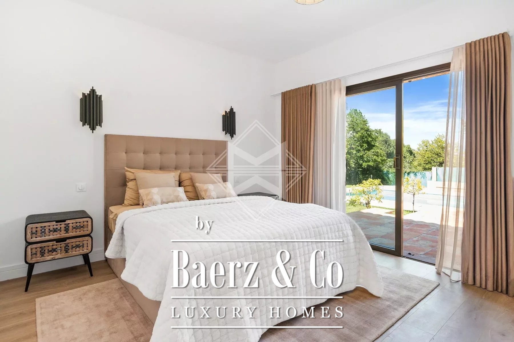 This Provençal villa Valbonne sits moments from the village and international schools, offering privacy within a lush, secluded setting. Meticulously renovated with understated sophistication, the property elegantly blends warm stone and wood with contemporary design. The 181 m² interior unfolds into six main rooms, anchored by a reception space distinguished by high ceilings, and complemented by five bedrooms, an office, and a flexible mezzanine.