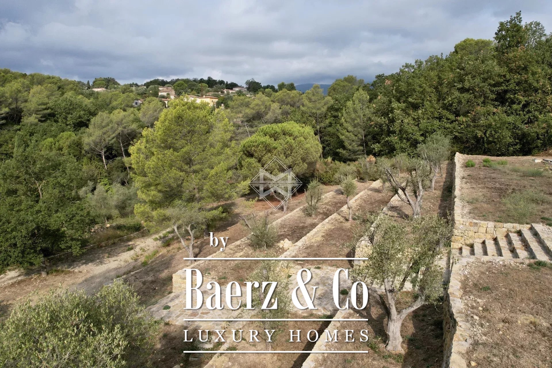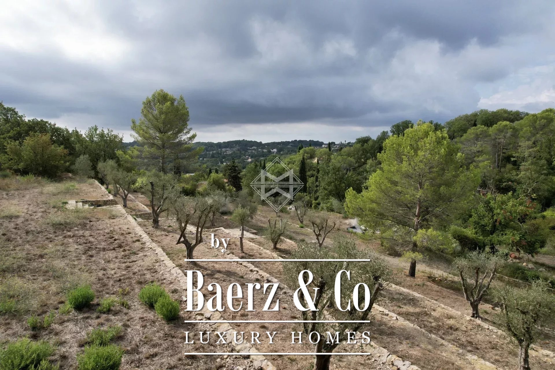 Within walking distance of the village of Valbonne, in a quiet setting and enjoying a beautiful panoramic view, this magnificent building plot of 11 166 m² (approx.) and his olive grove landscaped in stone terraces. A building permit is agreed for an exceptional property in a contemporary architectural style, for a total surface of 506 m2 comprising a main house (349