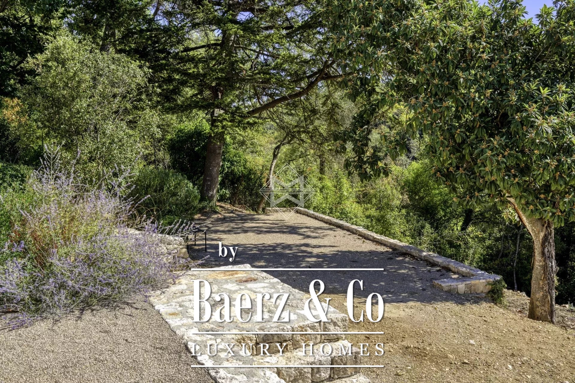 At the foot of the village of Valbonne, nestled in a preserved haven of greenery, this exceptional contemporary architect-designed home masterfully blends modern design, tranquility, and nature. It is surrounded by a stunning setting of lush forest and a meticulously landscaped garden inspired by the "English Garden" style — a true invitation to serenity and privacy.
