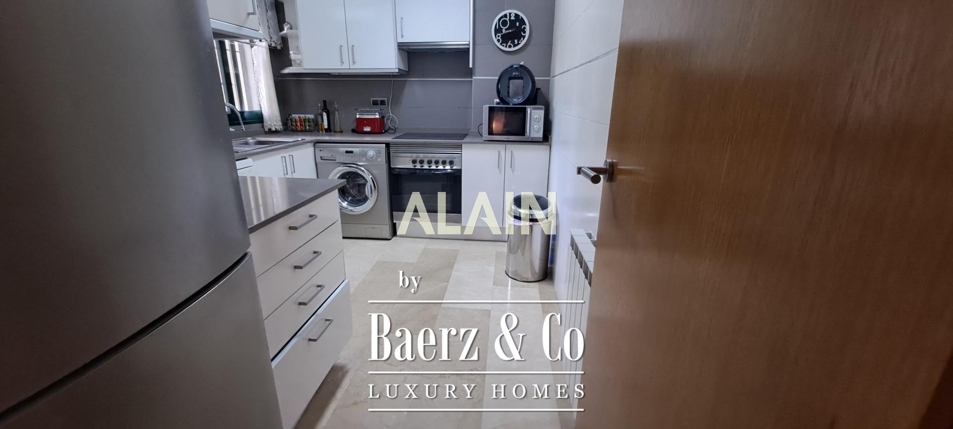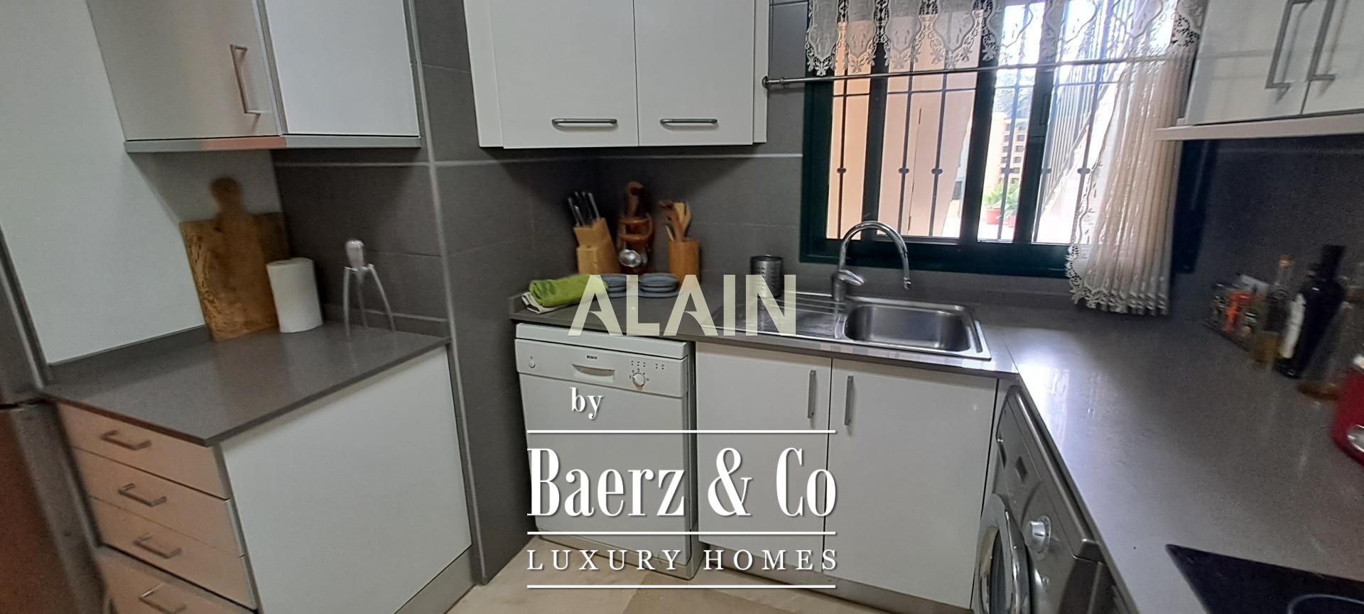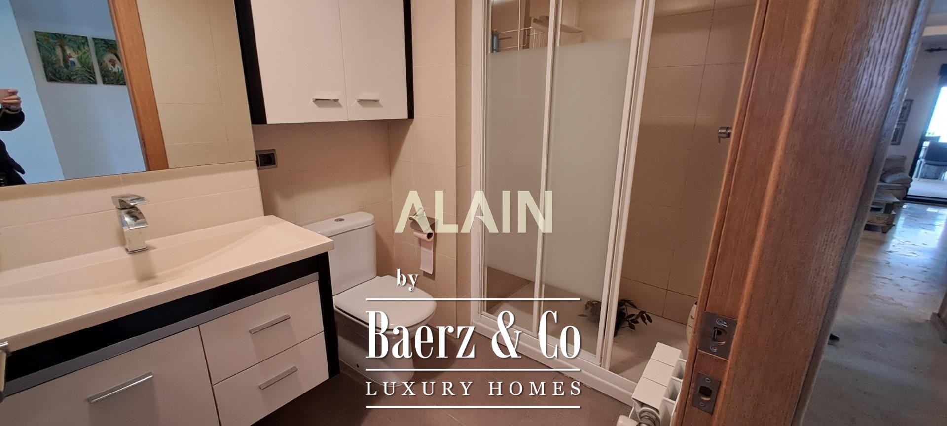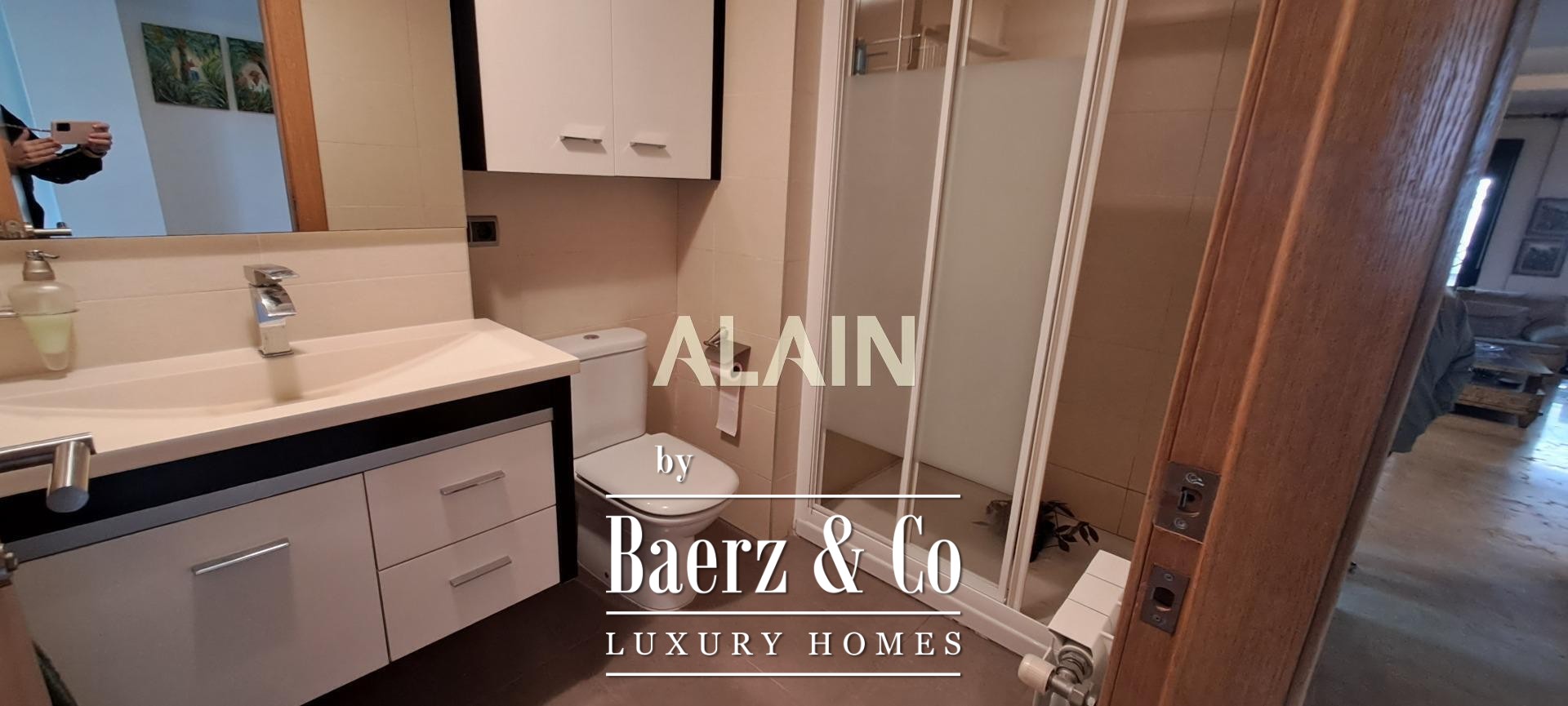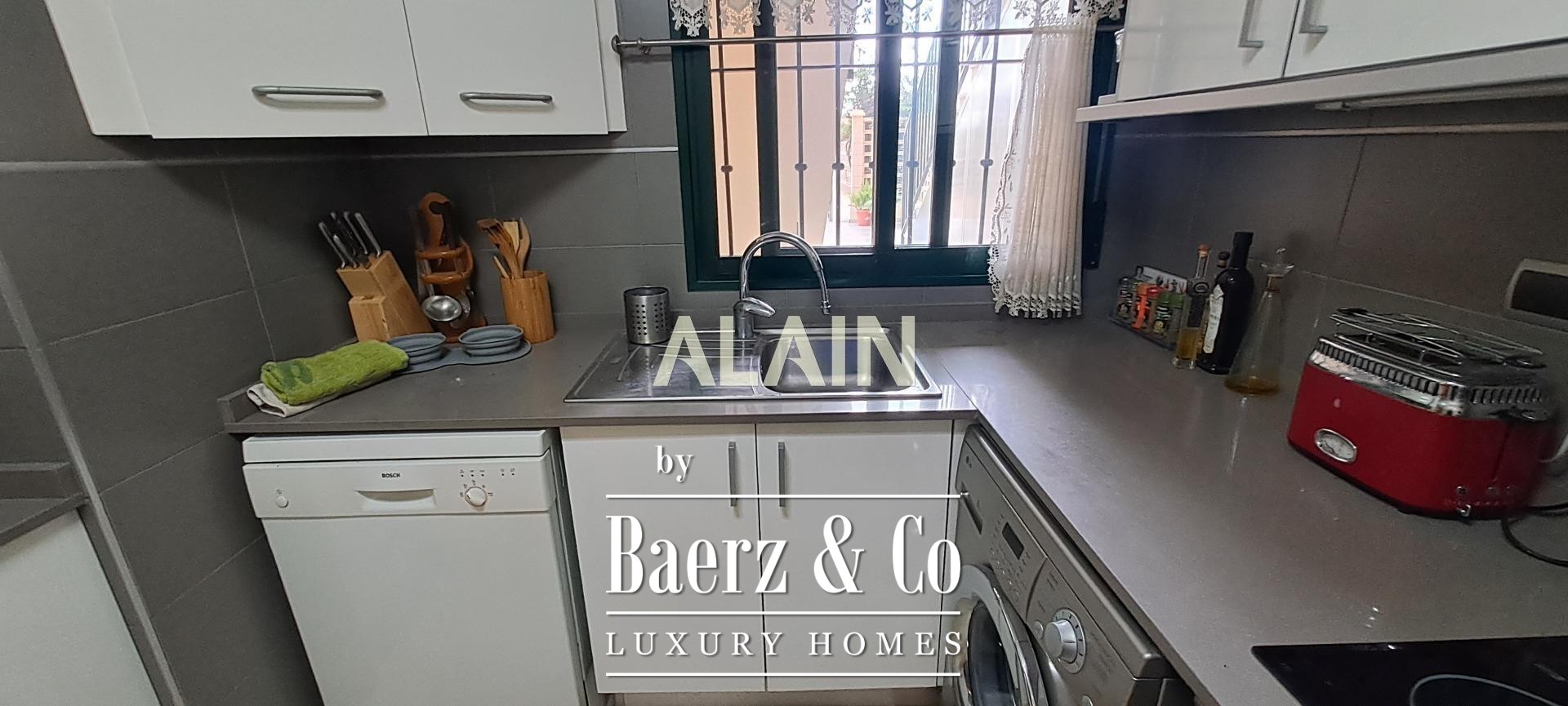 Meticulously renovated, the interiors blend high ceilings, cross ventilation, and contemporary finishes. The private chill-out area and barbecue kitchen invite informal gatherings and quiet evenings alike. Two reserved garage spaces accompany the property, while built-in wardrobes, heating, air-conditioning, and curated furnishings add thoughtful layers of comfort.