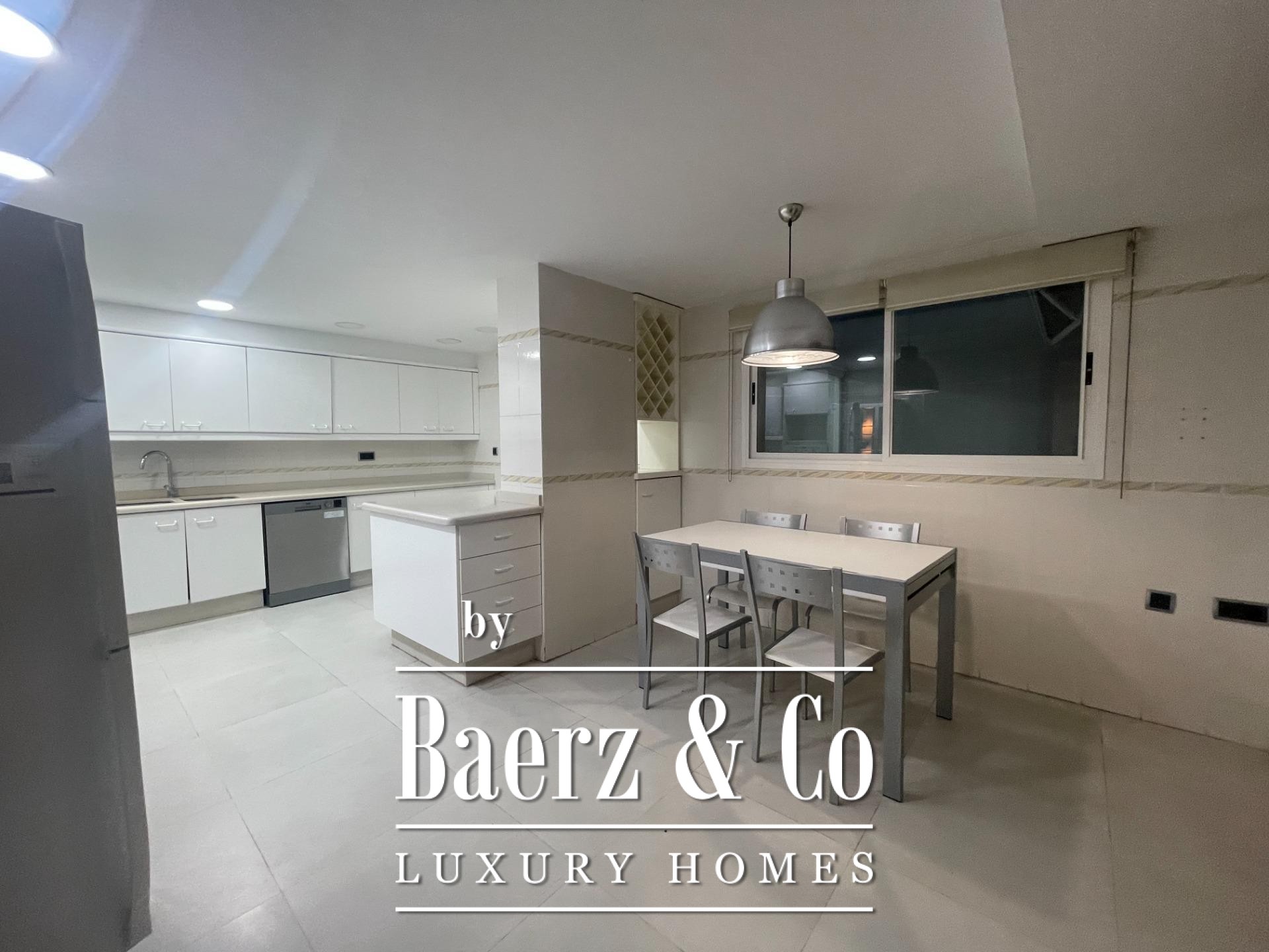 Apartment Valencia is defined by its serene presence on Colón Street within a modern building constructed in 1990. The 269 m² living area unfolds from a generous entrance hall into a broad living and dining space, illuminated by expansive windows that lend a sense of unhurried calm. Five double bedrooms, each with built-in wardrobes, include a master suite distinguished by its own dressing room. Three full bathrooms, one en suite, and a guest toilet complete the thoughtfully planned layout.