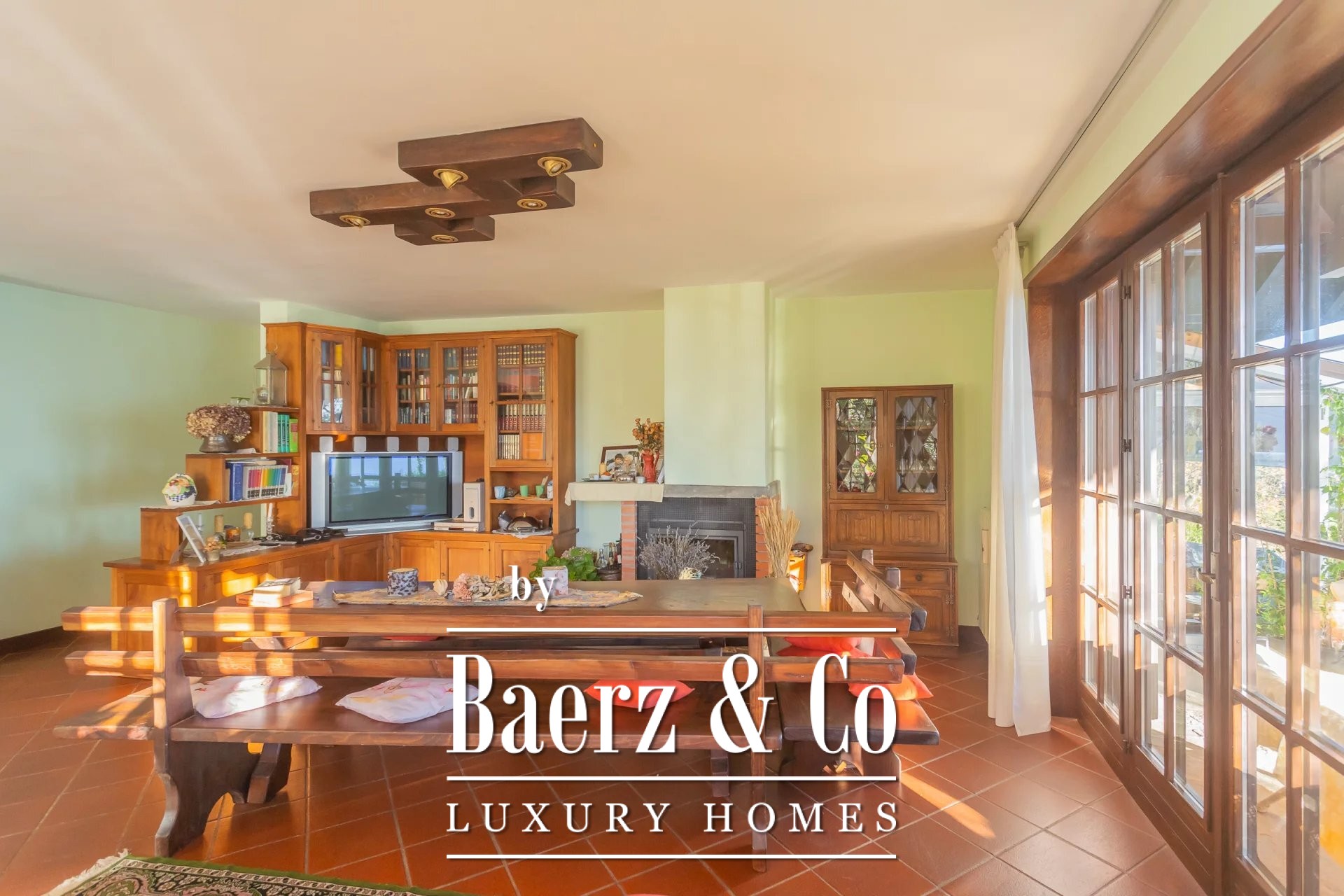 This villa boasts a prime location, surrounded by lush woods and offering breathtaking views of the lake. The property is partially terraced and forested, creating a private haven.