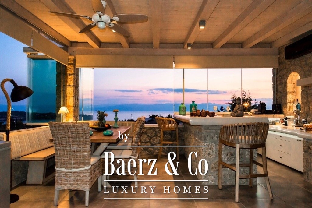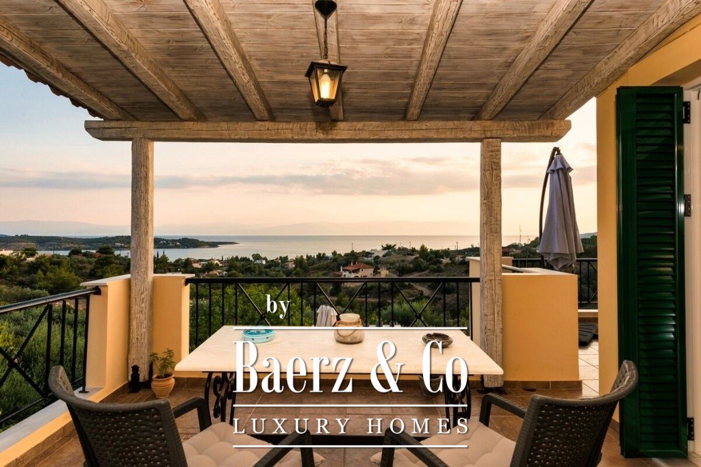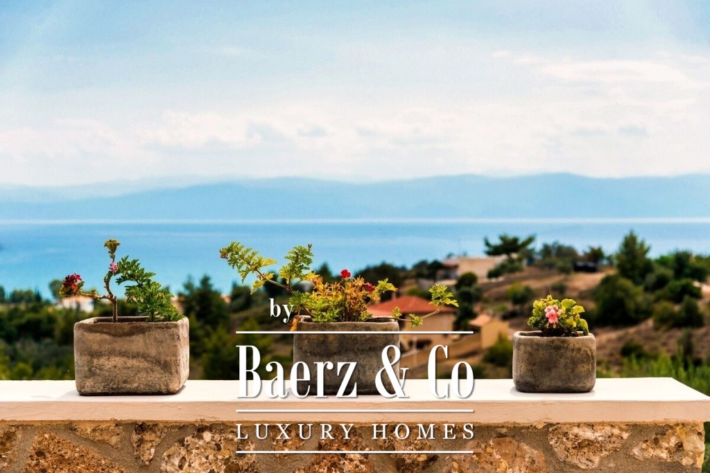 With a wonderful unobstructed view of the Argolic Gulf, on a beautiful hillside, with a fenced and demarcated plot of 2,000 m², a detached Villa with a total surface of 200 m² is available for sale. The neighborhood around the house has few buildings, that are mostly luxurious vacation homes. The main volume of the residence extends over three levels. From the 2nd level, where the main entrance is located, we have access to a single room, where we will find the kitchen, the dining room and the living room with the fireplace. All areas have access to terraces covered with pergolas and offer excellent views. On the same level we also find a WC, 2 internal storage rooms and the staircase leading to the 3rd level. The 3rd level consists of a bathroom and 2 bedrooms, each one with independent terraces. The 1st level has an independent entrance and consists of a single living room with a kitchen, a bathroom and a bedroom. From this level we have direct access to the landscaped yard, the pool and the BBQ. Outside the main volume of the residence and under the roofed Bbq, there is an additional studio apartment, consisting of a single room with a kitchenette and a bathroom. Access to the residence is via a municipal,