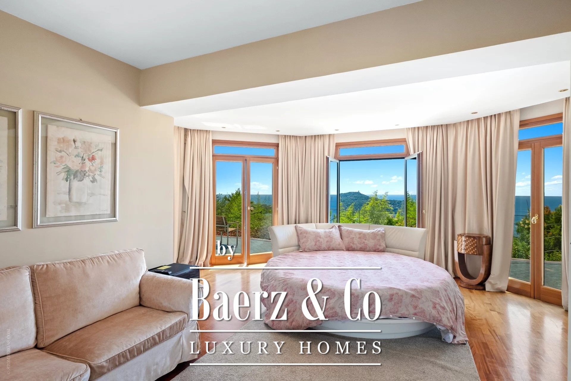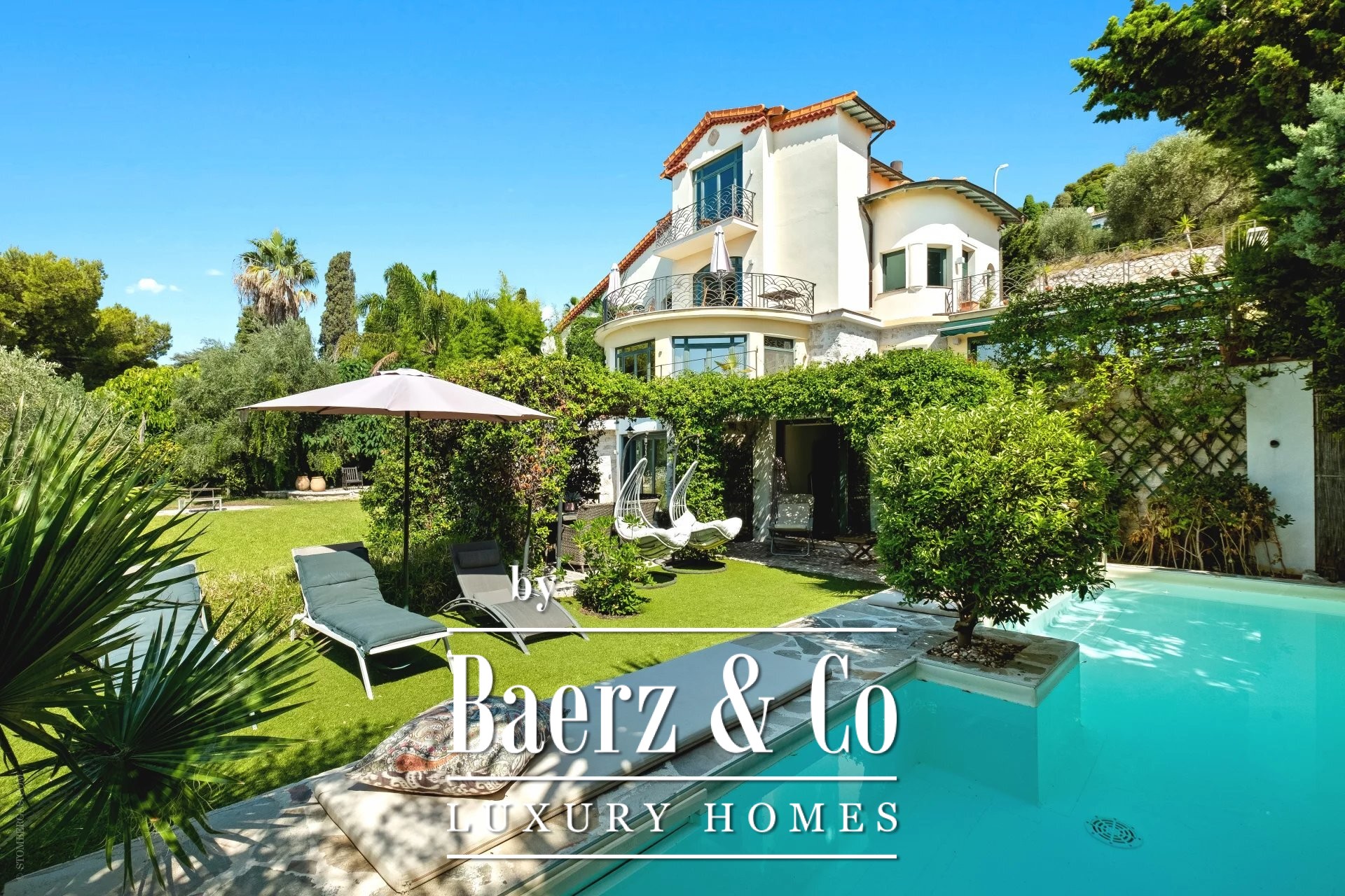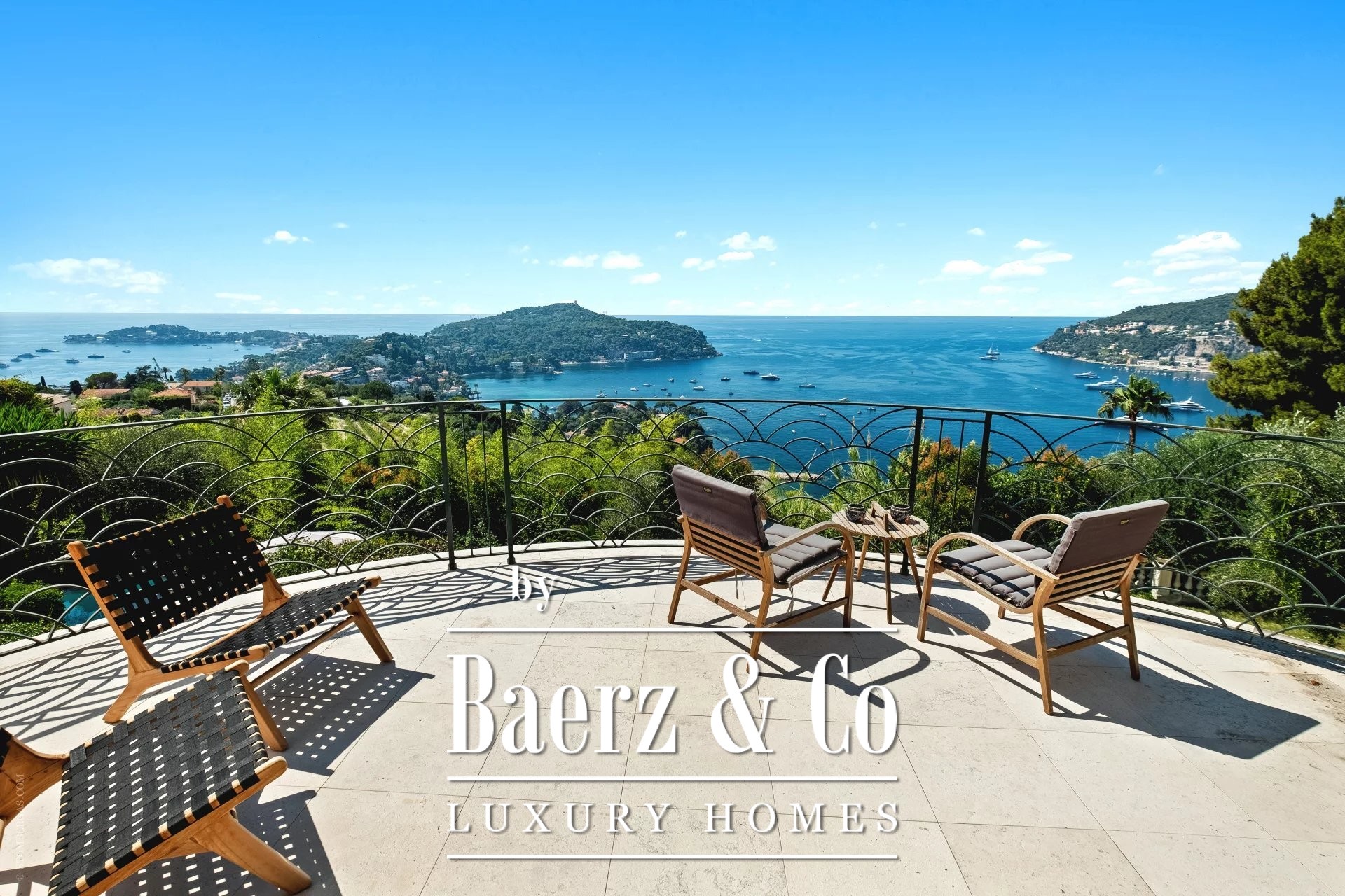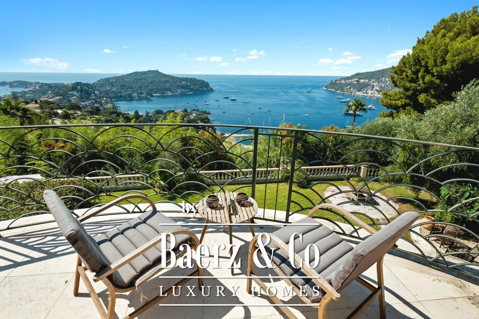 Beautiful villa with panoramic sea view over the bay of Saint Jean Cap Ferrat, just 400 meters from the beaches of Villefranche, built in 1930, southern exposure, renovated in 2017. The property of approximately 450 m2, is spread over 4 levels with lift , plot of 1000 m2, has large terraces, swimming