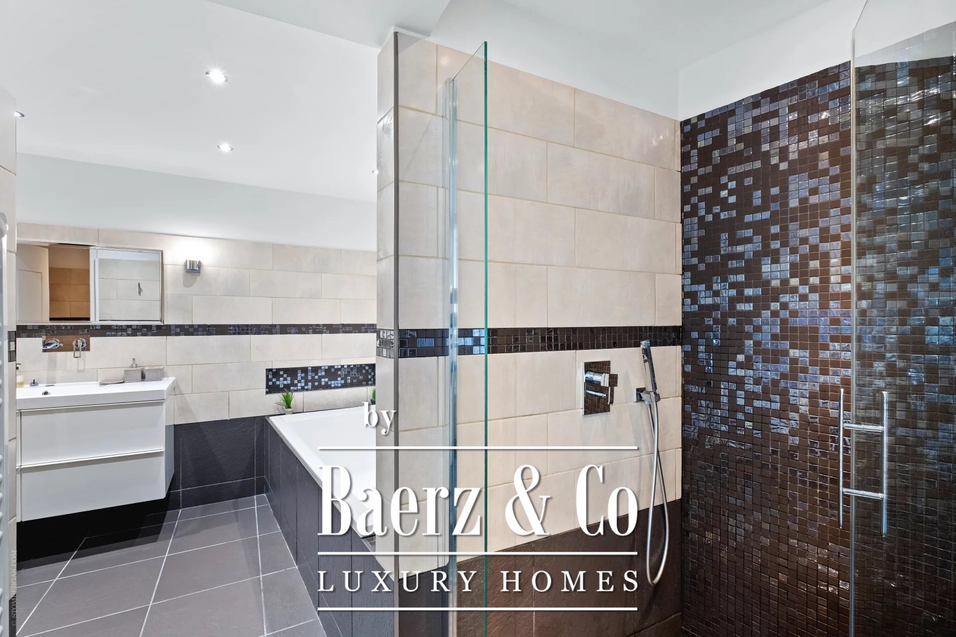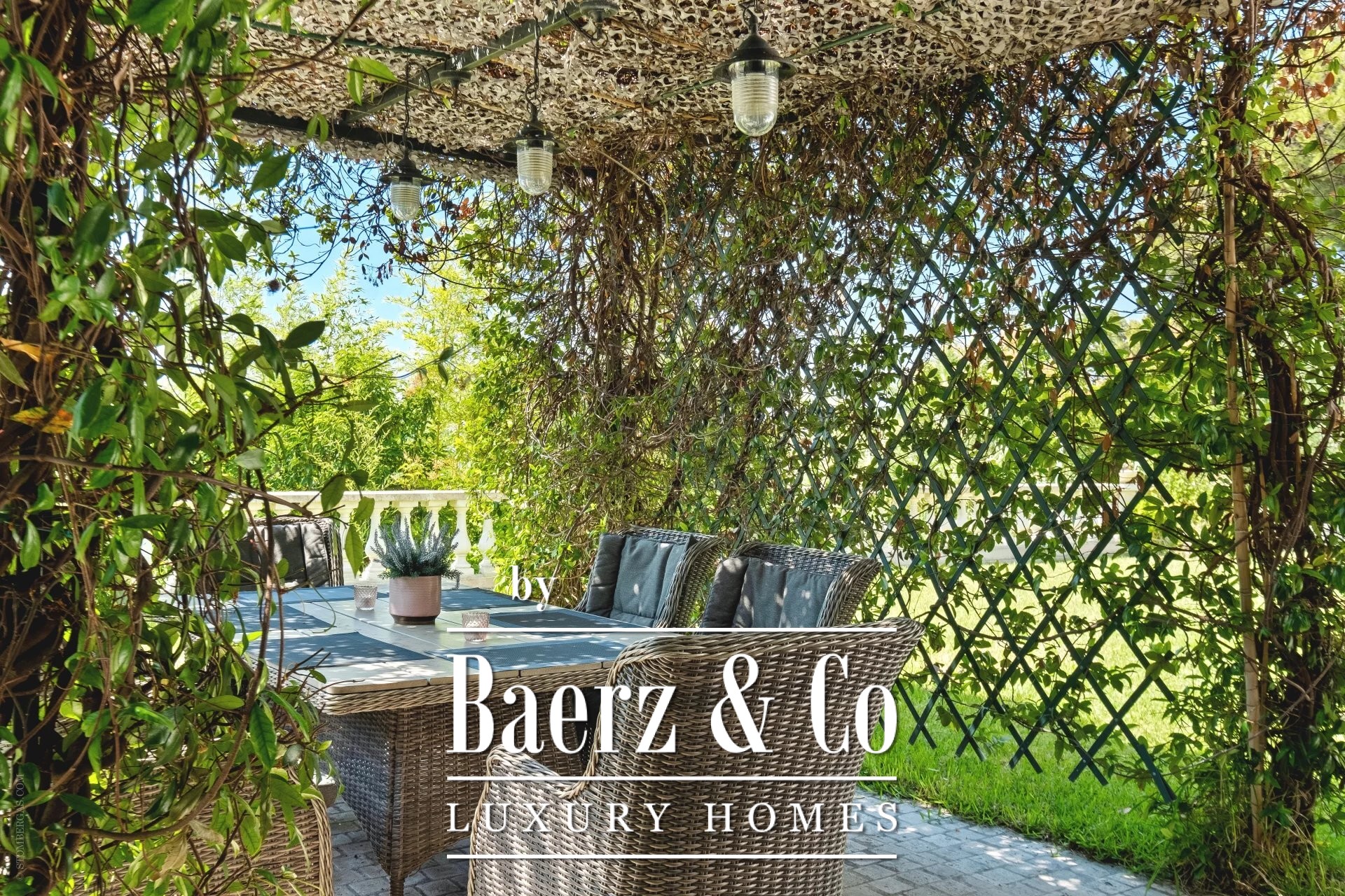 pool, a flat garden of 500 m2, solarium. On the ground floor it is composed of: kitchen, living room, bar, bathroom, fitness room, sauna. Elevator with access to all floors. There are 4 master bedrooms, living room, utility room, servants' bedroom. Garage, 2 covered parking spaces