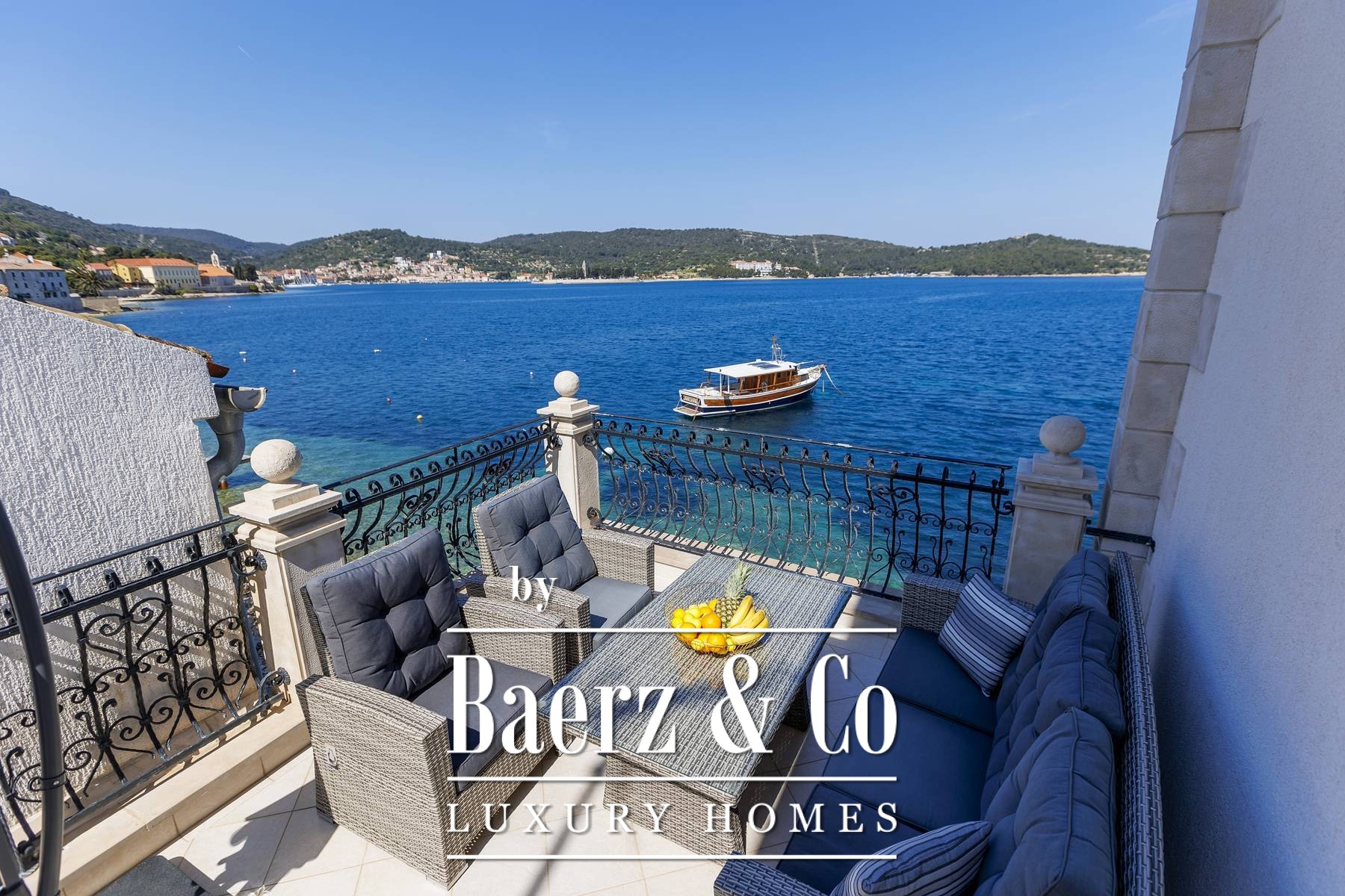 The villa comprises seven bathrooms, four fully equipped kitchens, a large outdoor grill and sink, outdoor shower, and professional air conditioning throughout. The largest apartment features a grand terrace for direct sea access. The plot encompasses 310 m², designed for privacy and restful living. Just steps away are curated local restaurants, markets, and all amenities, embedding you in the rhythm of authentic island life. This luxury villa for sale in Vis is an address for those seeking both discretion and distinction.