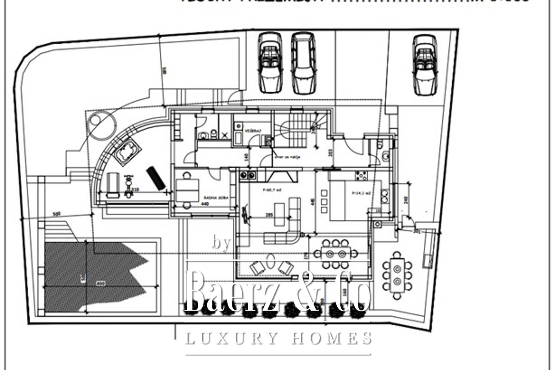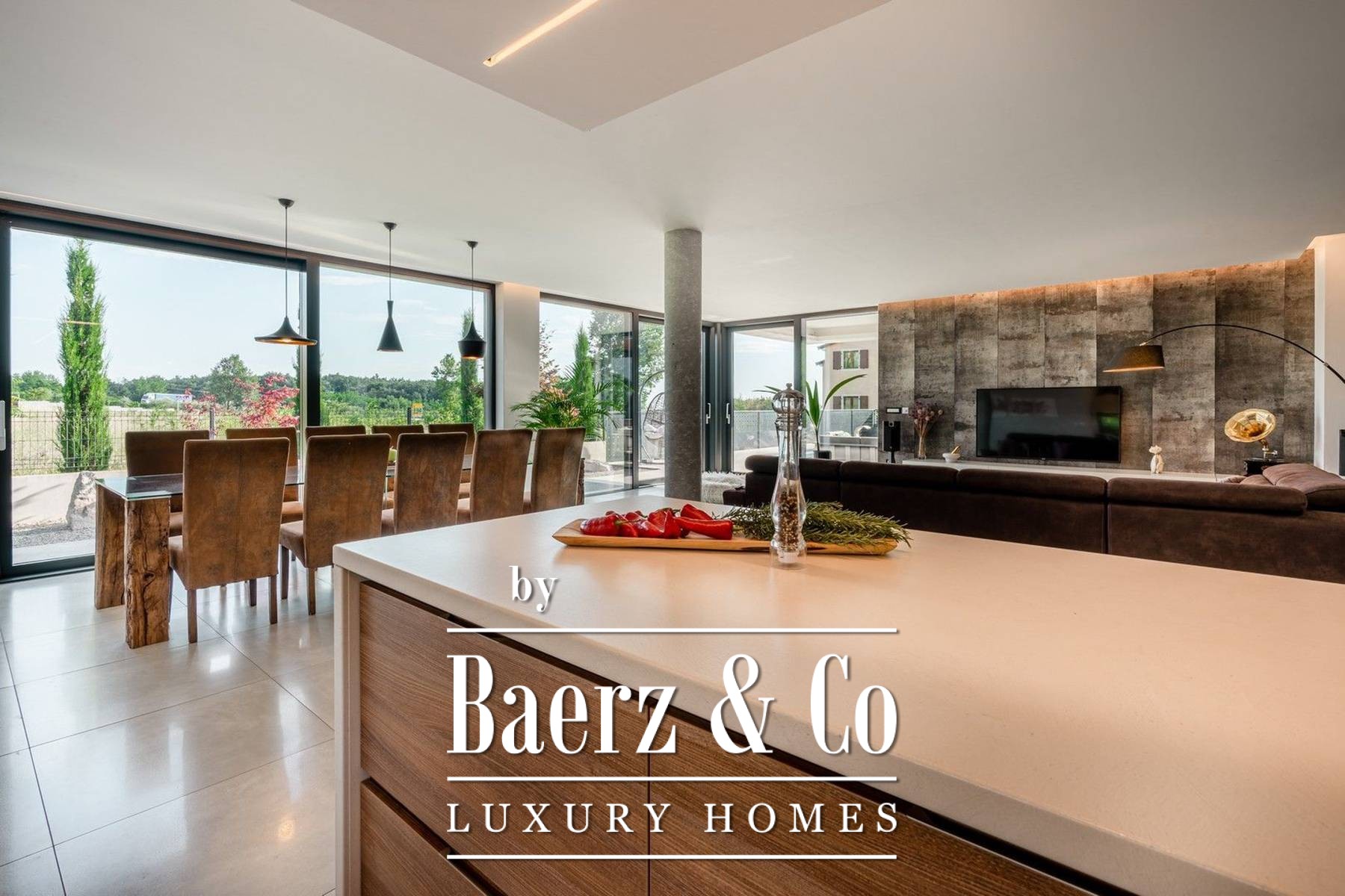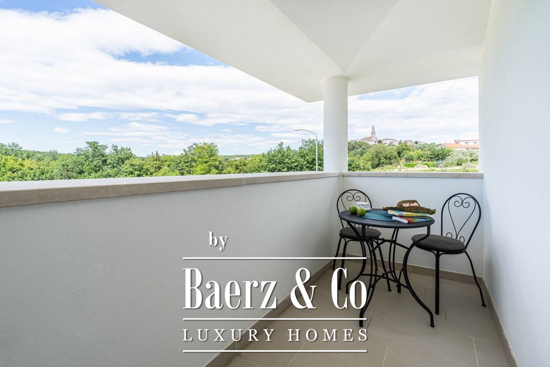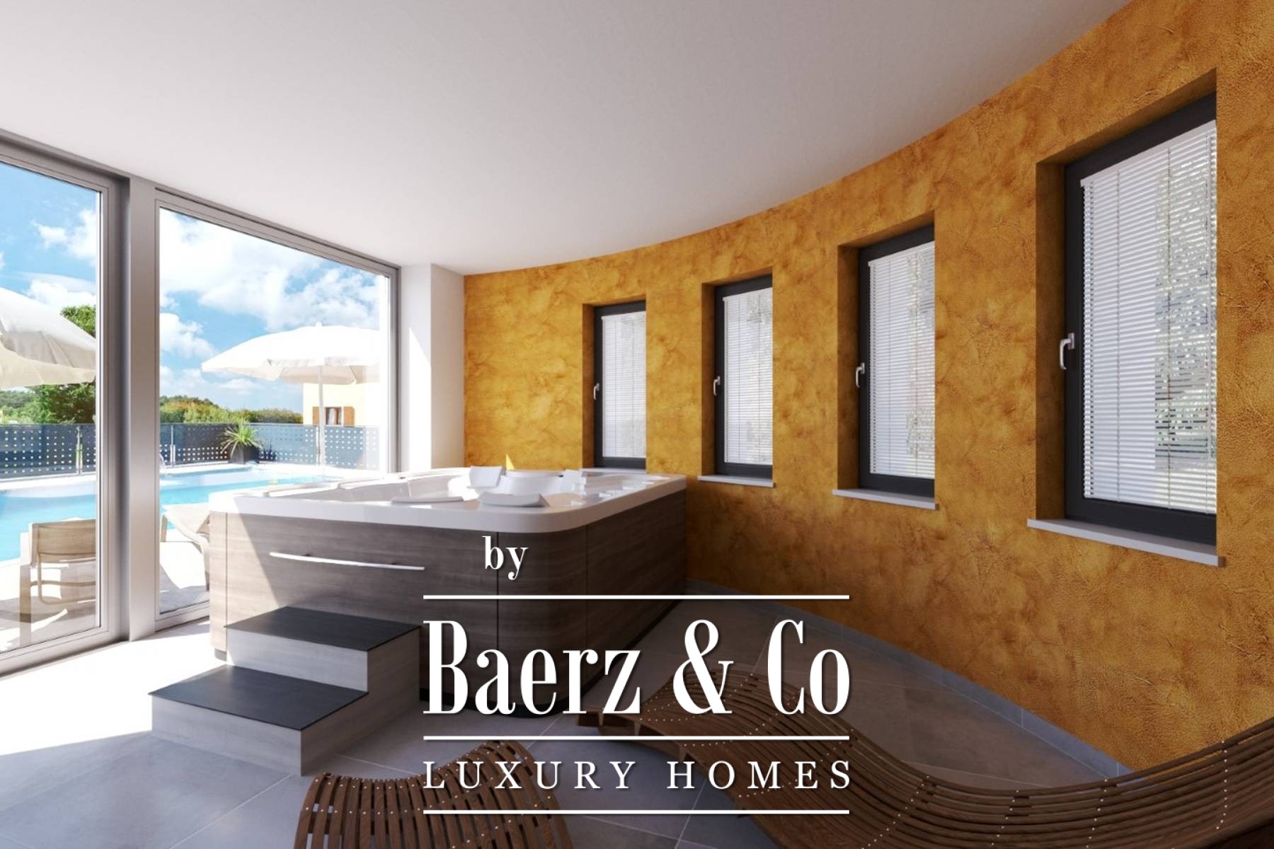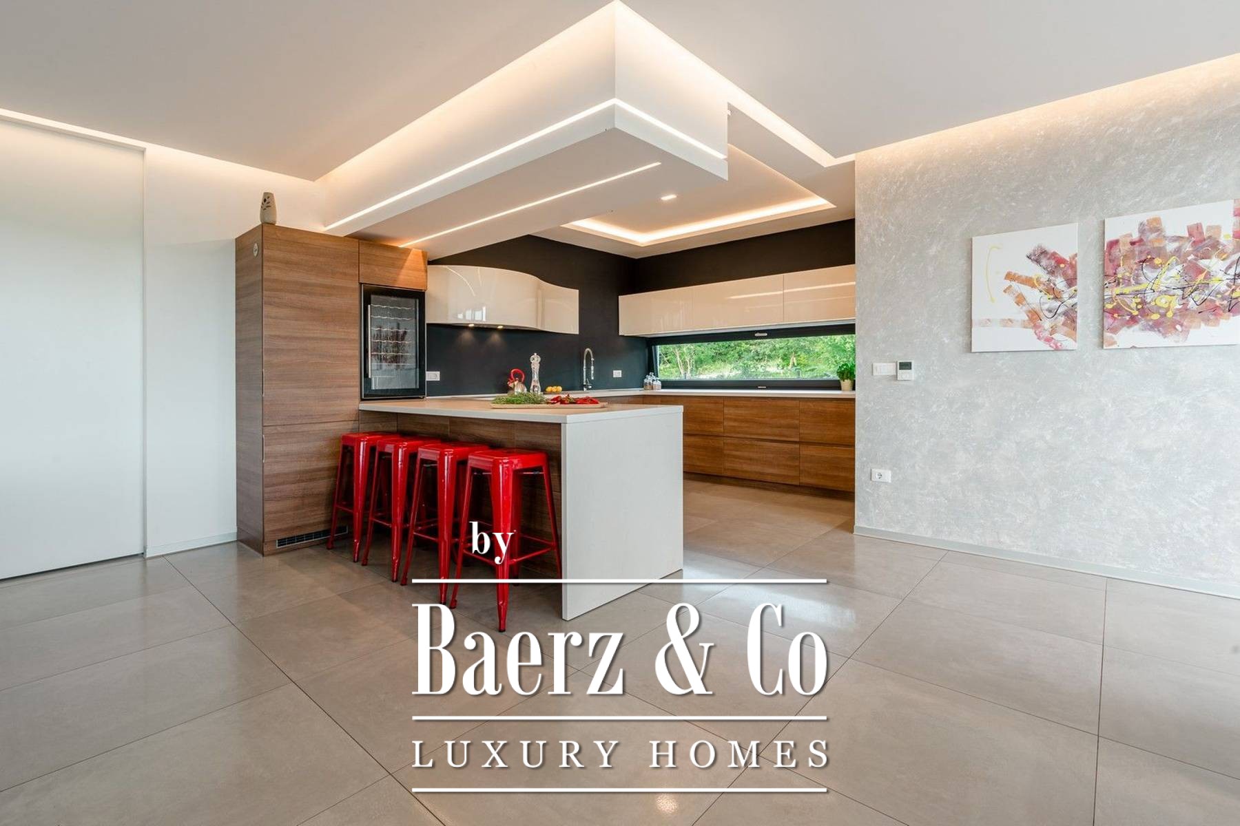 In Višnjan, near Poreč, a beautiful modern villa with a private pool is for sale.A masterpiece of modern architecture, it is equipped for a relaxing holiday in Istria. Situated on a small hill, in front of the villa there is a magnificent view of the sea and the lovely landscape.The spacious and open layout is accompanied by large windows and French doors, which let in plenty of natural light throughout the day.It consists of 4 bedrooms that are all decorated in their own style, from charmingly romantic to urban