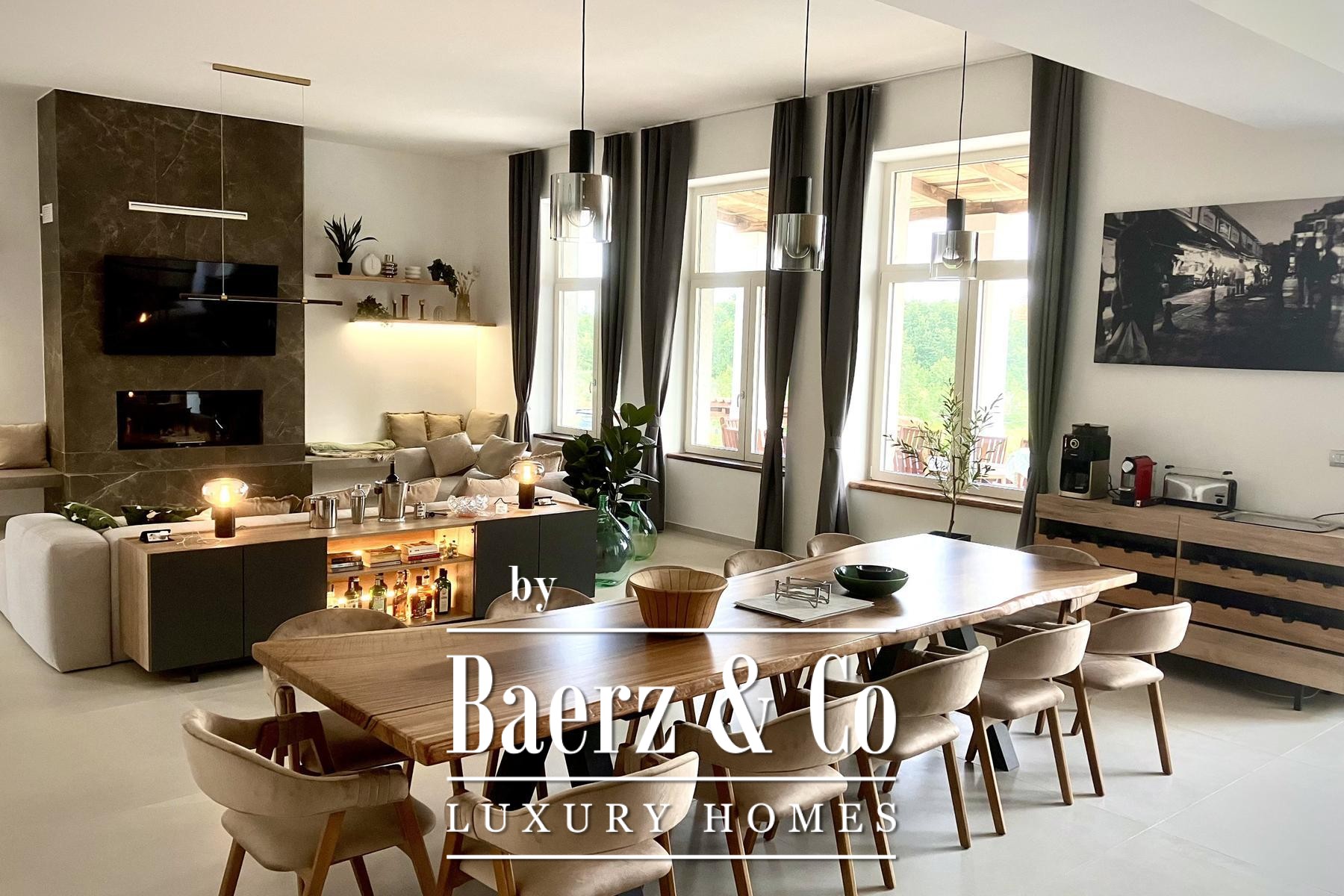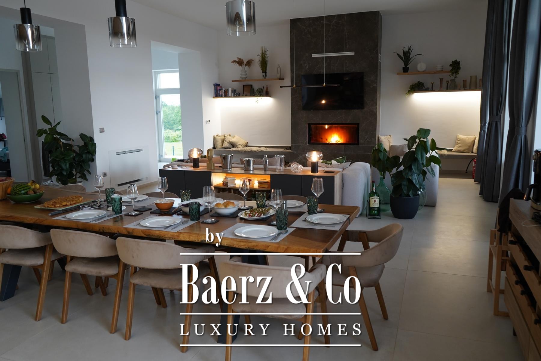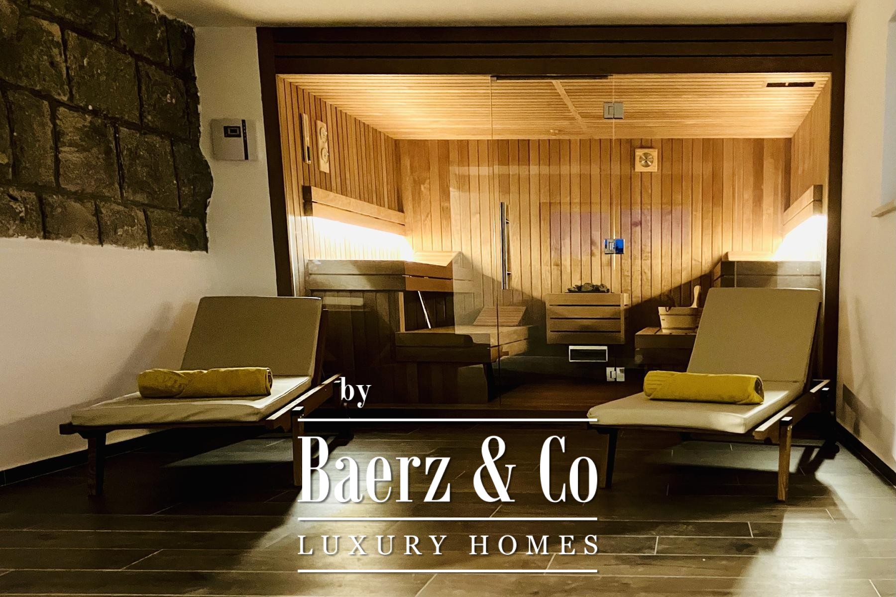 Another highlight is the wellness area in the basement with a Finnish sauna, relaxation room, shower and gaming room. There is also a laundry room on this level.