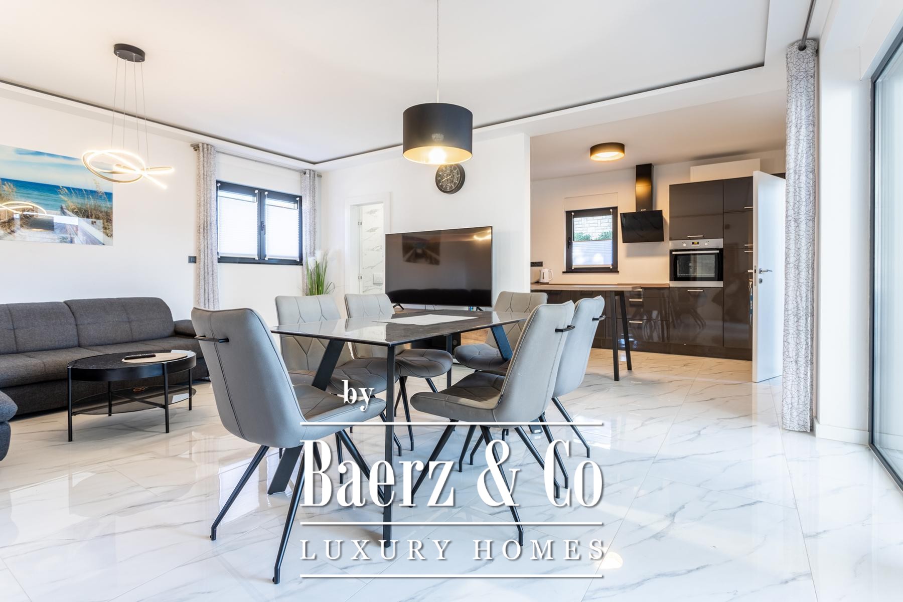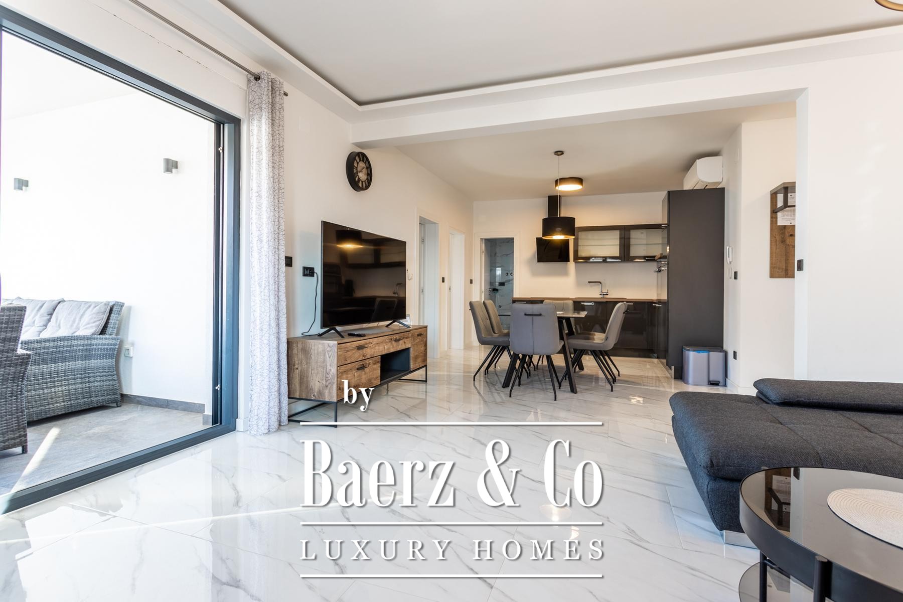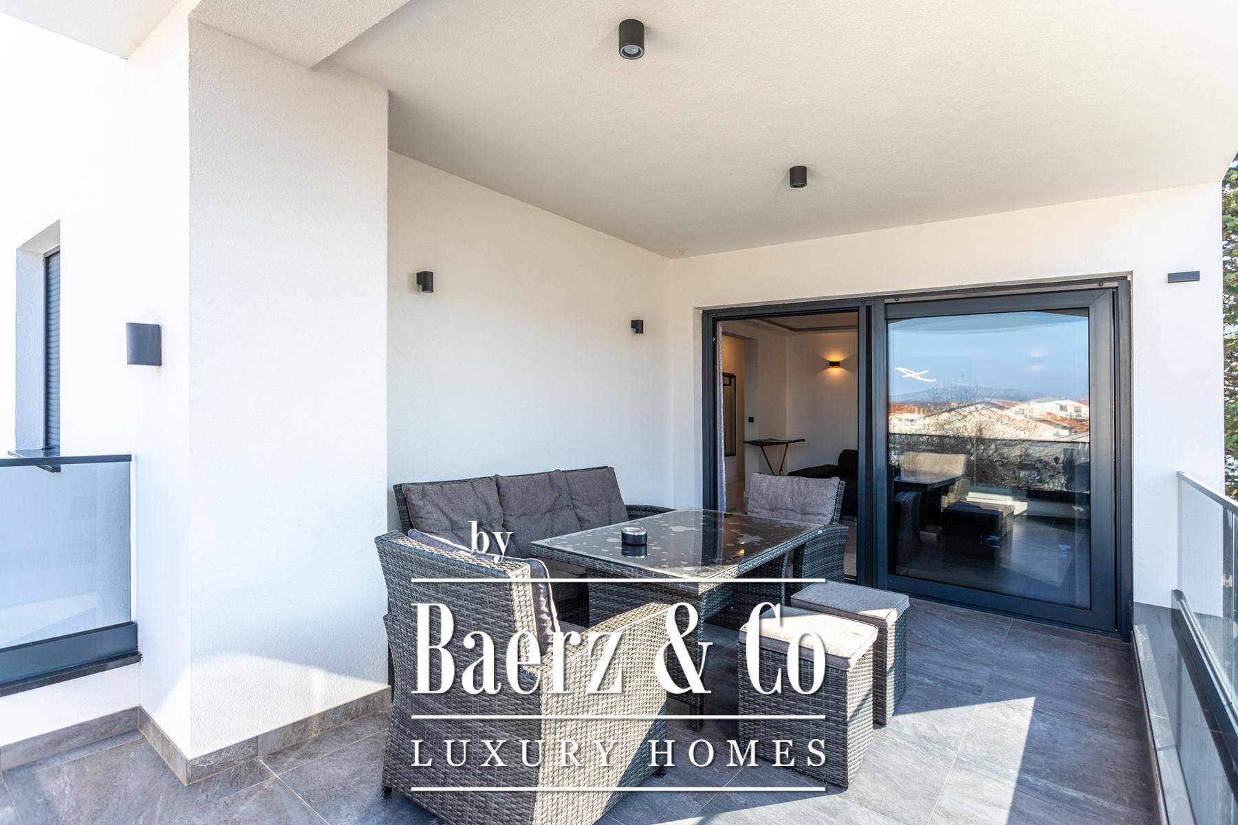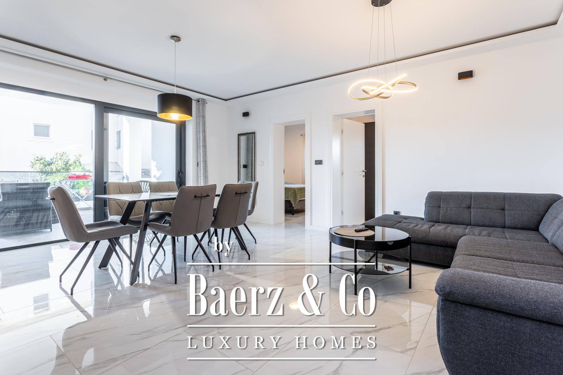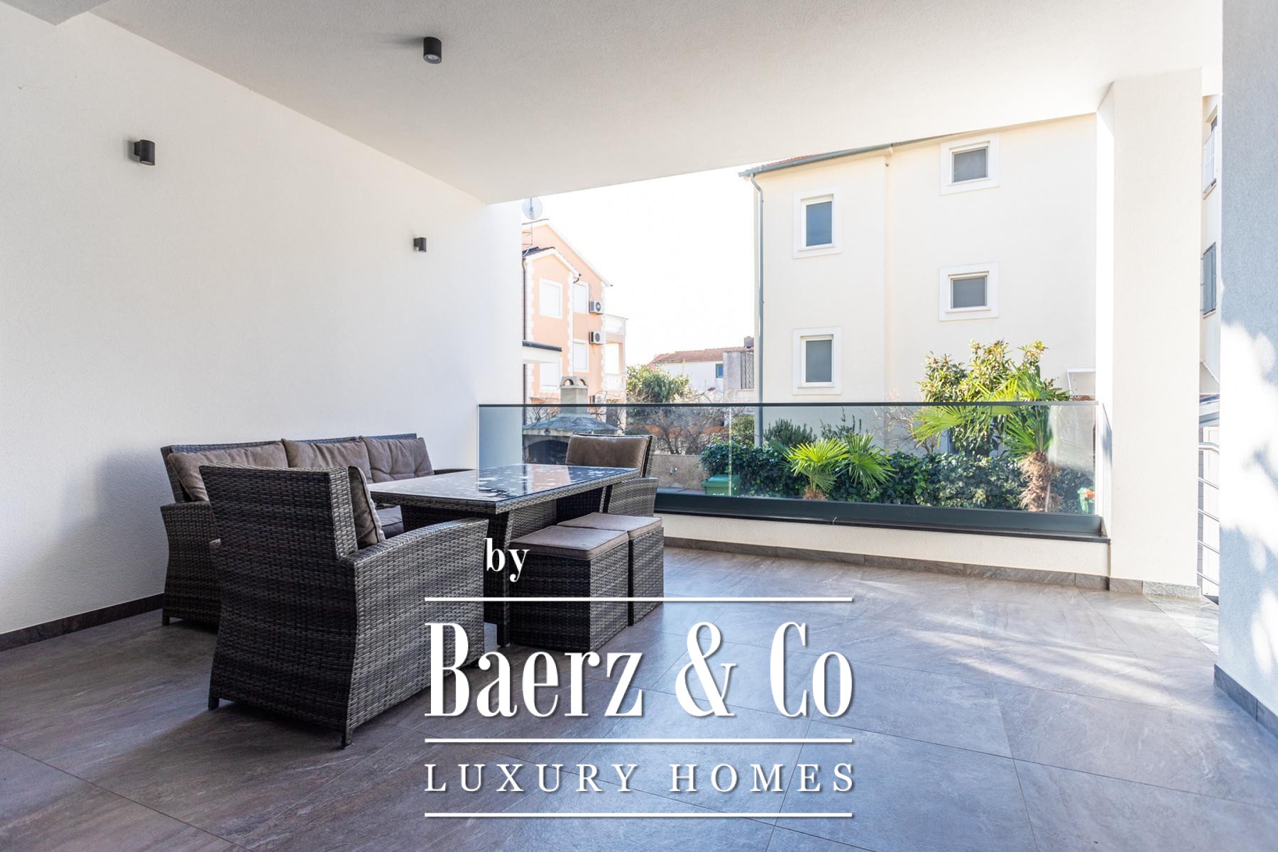 Outdoor living is elevated by generous terraces, including a private rooftop terrace of 110 m² exclusive to the second-floor apartment, extending the living area and drawing in natural light. On the grounds, there are multiple dedicated parking spaces, providing convenience within the private yard. This property offers a flexible layout, nestled in the sought-after setting of Vodice, Croatia.