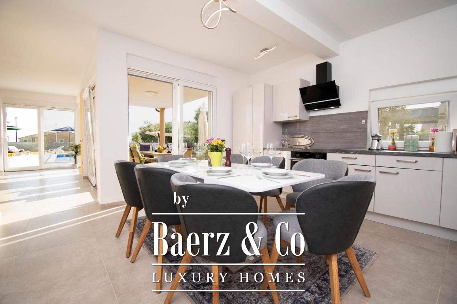 Villa Vodnjan sits quietly in a tranquil part of Croatia, offering 250 m² of modern living and uninterrupted sea views. This villa Vodnjan property welcomes you with a ground floor layout defined by light and connection to the outdoors. An entrance hall leads to an open kitchen and dining area, a bedroom with en-suite bath, a spacious living room, and sweeping views across the pool toward the sea.