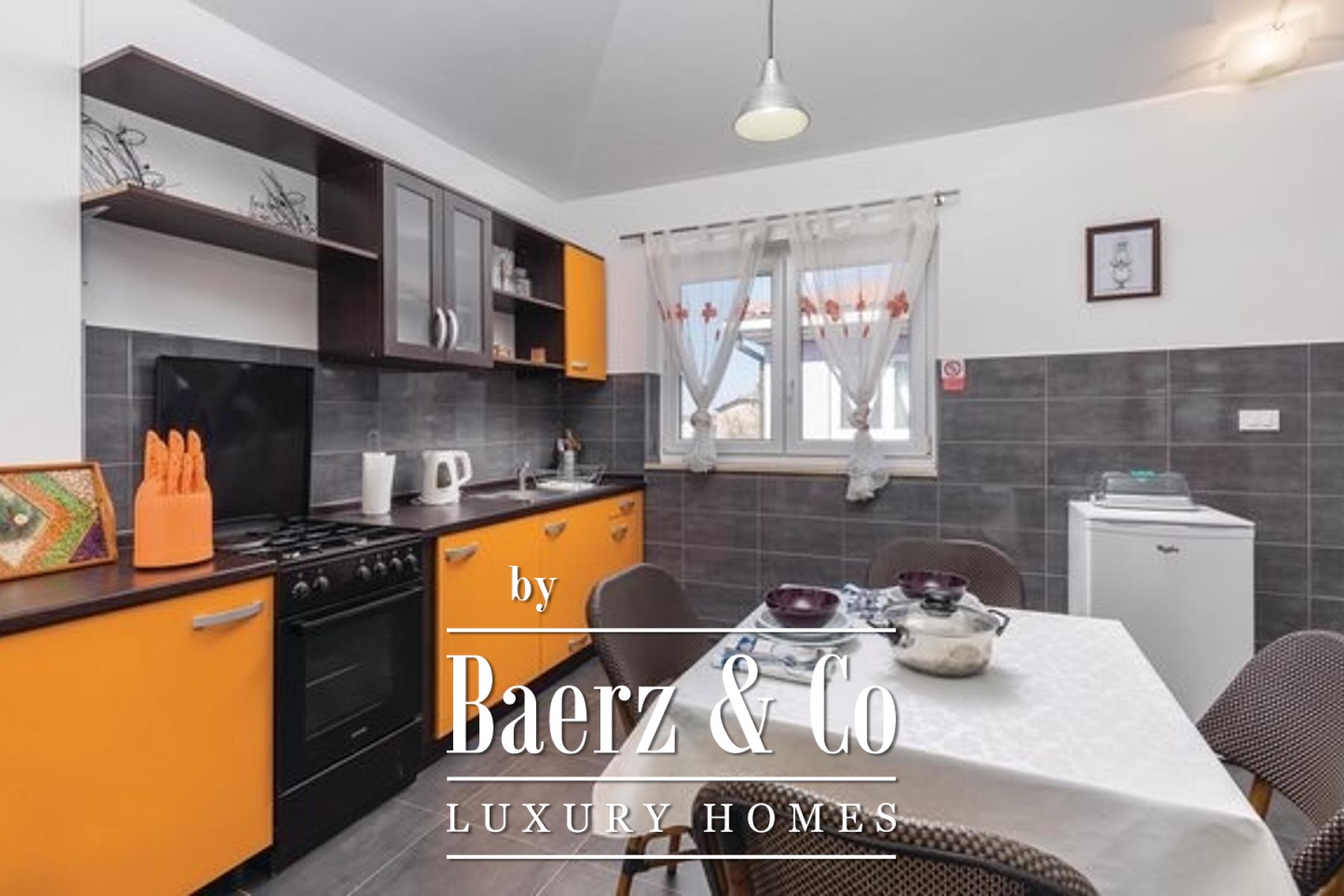 A 53.5 m² cellar forms the heart of the home for gatherings, complete with a bread oven, fireplace, and oak seating. Outdoors, mature landscaping frames a yard with tables, swings, and an irrigation system, while a 32.7 m² garage with ramp comfortably holds two cars. This luxury townhouse for sale in Vodnjan balances urban vibrancy and retreat, promising a Mediterranean lifestyle connected to both land and sea.