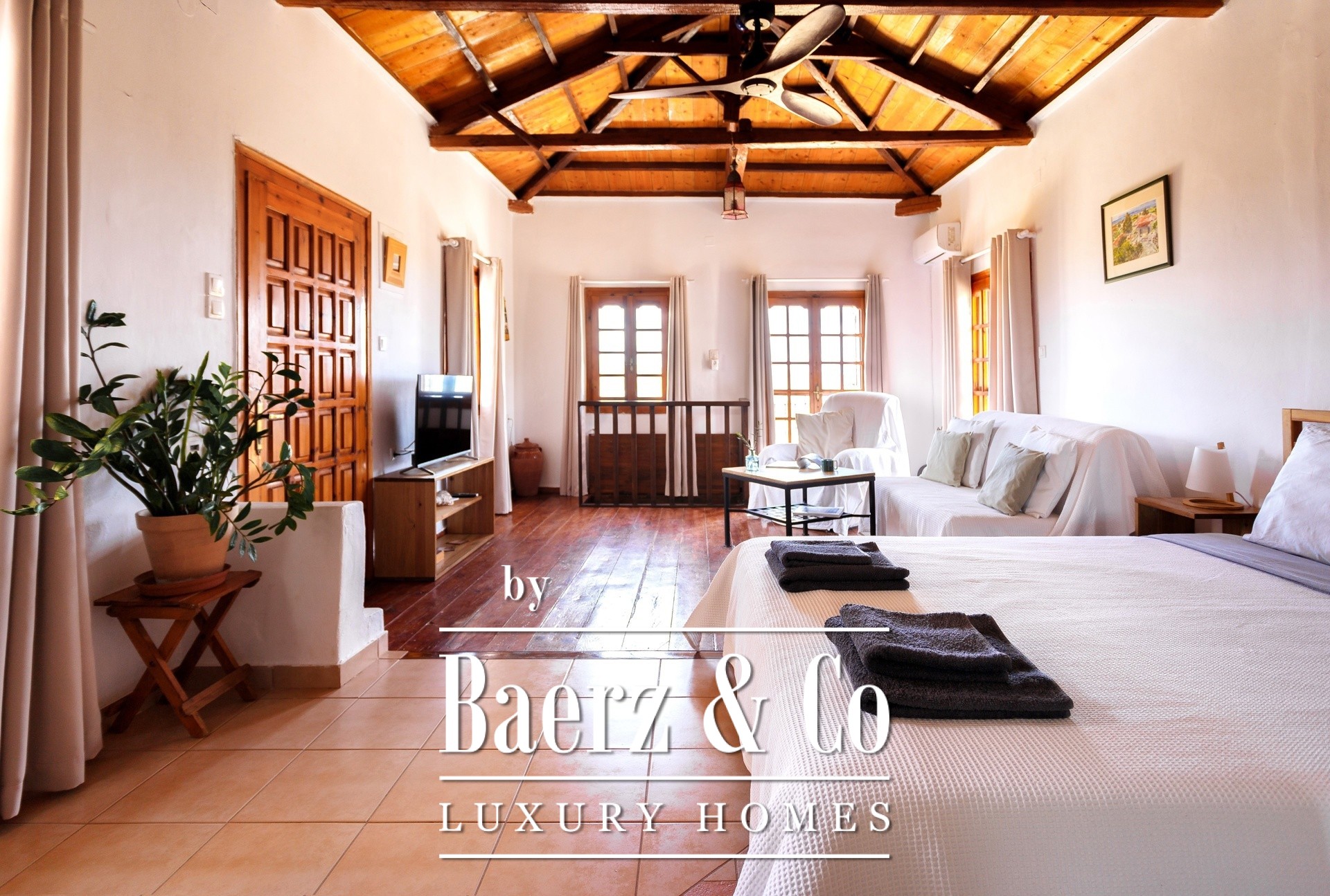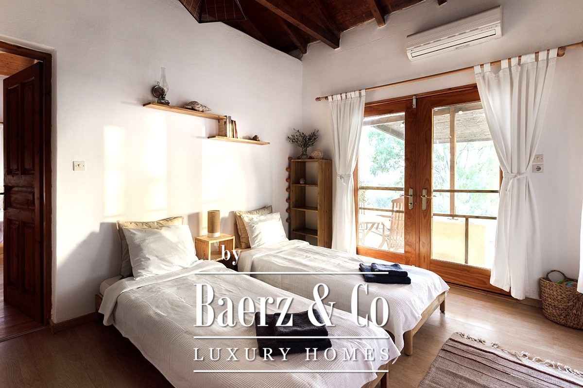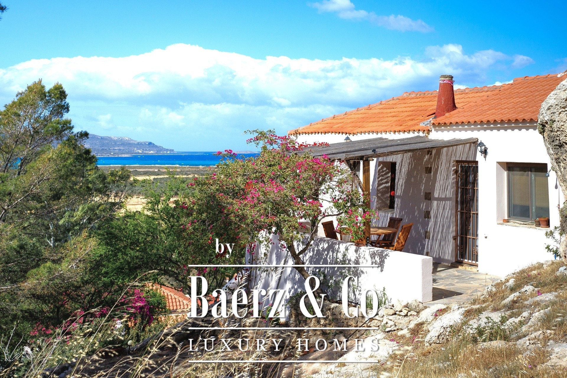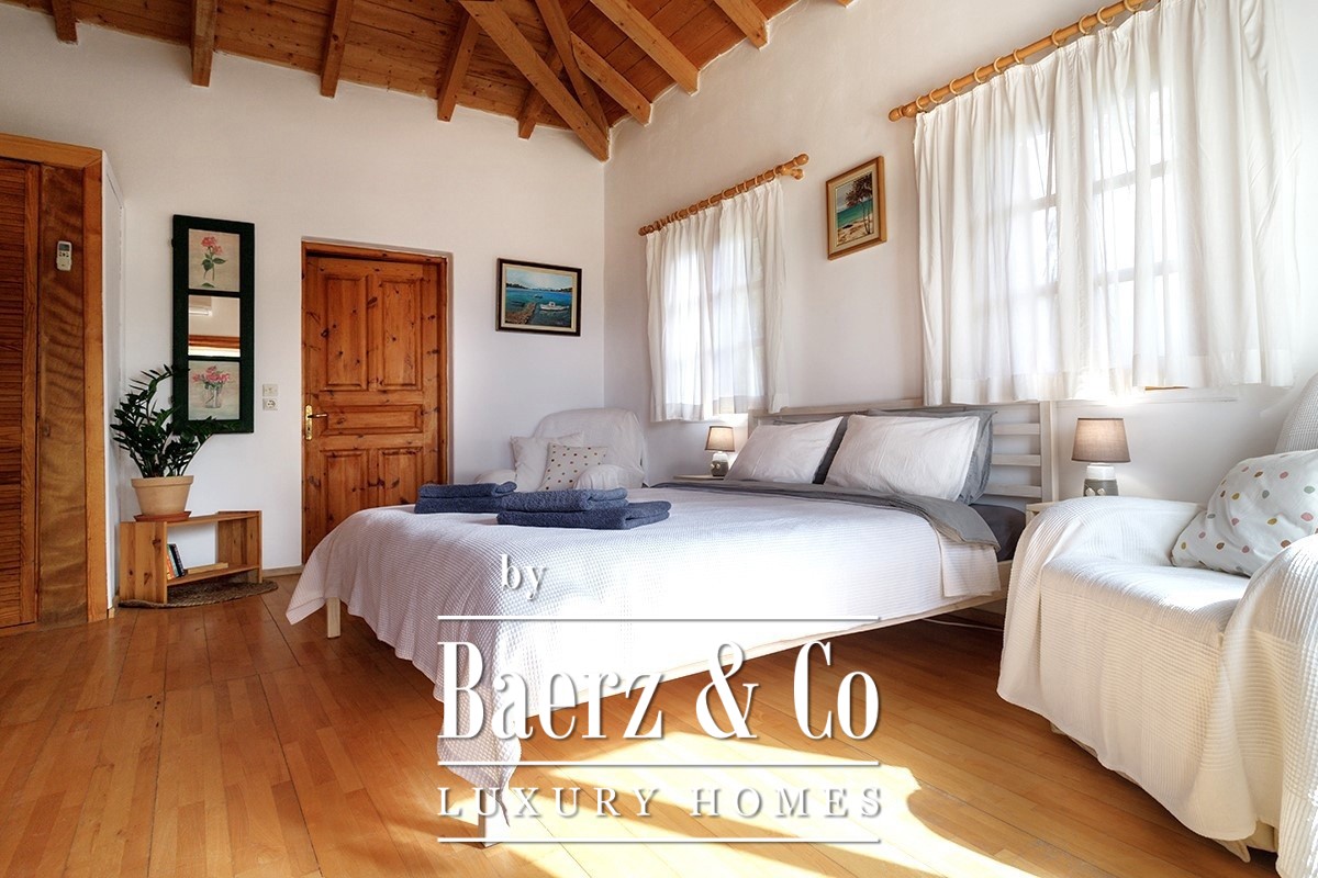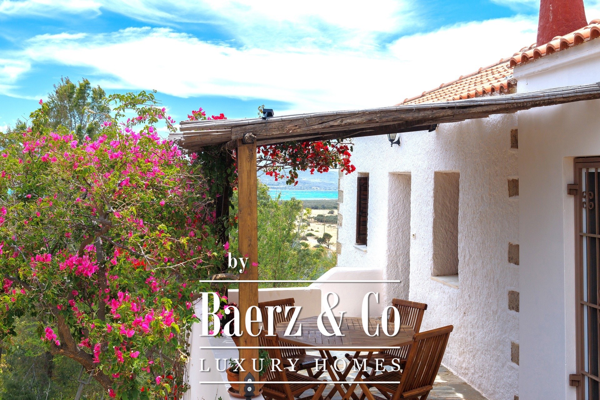 For sale: Three independent detached houses with a total area of 355.70 sq.m. on a 5,900 sq.m. plot. The property is in excellent condition, surrounded by lush olive groves, and built on a hill offering breathtaking views of the crystal-clear waters of the Laconian Gulf and the stunning Elafonisos. The unique location provides easy access to beautiful beaches and the ferry to Elafonisos, making it ideal for a large family or someone who wishes to live in one house and rent out the other two. The first house, with an area of 80 sq.m., features a living room, kitchen, one bedroom, and a bathroom on the ground floor. An internal staircase leads to an additional bedroom. The fireplace creates a warm atmosphere, and the spacious terraces offer magnificent views, perfect for relaxation. The second house, with an area