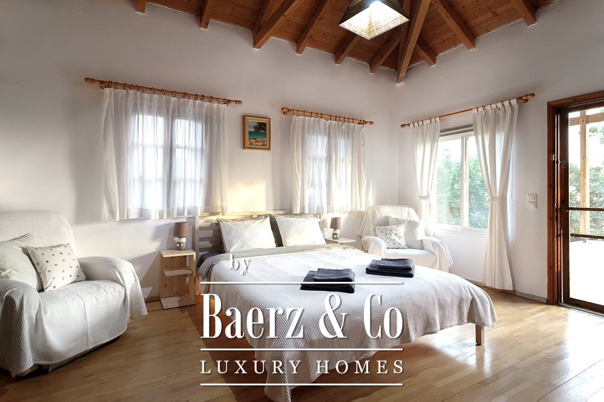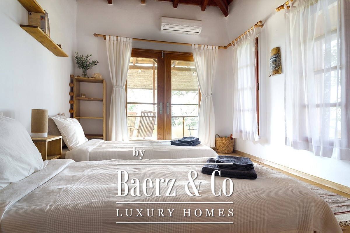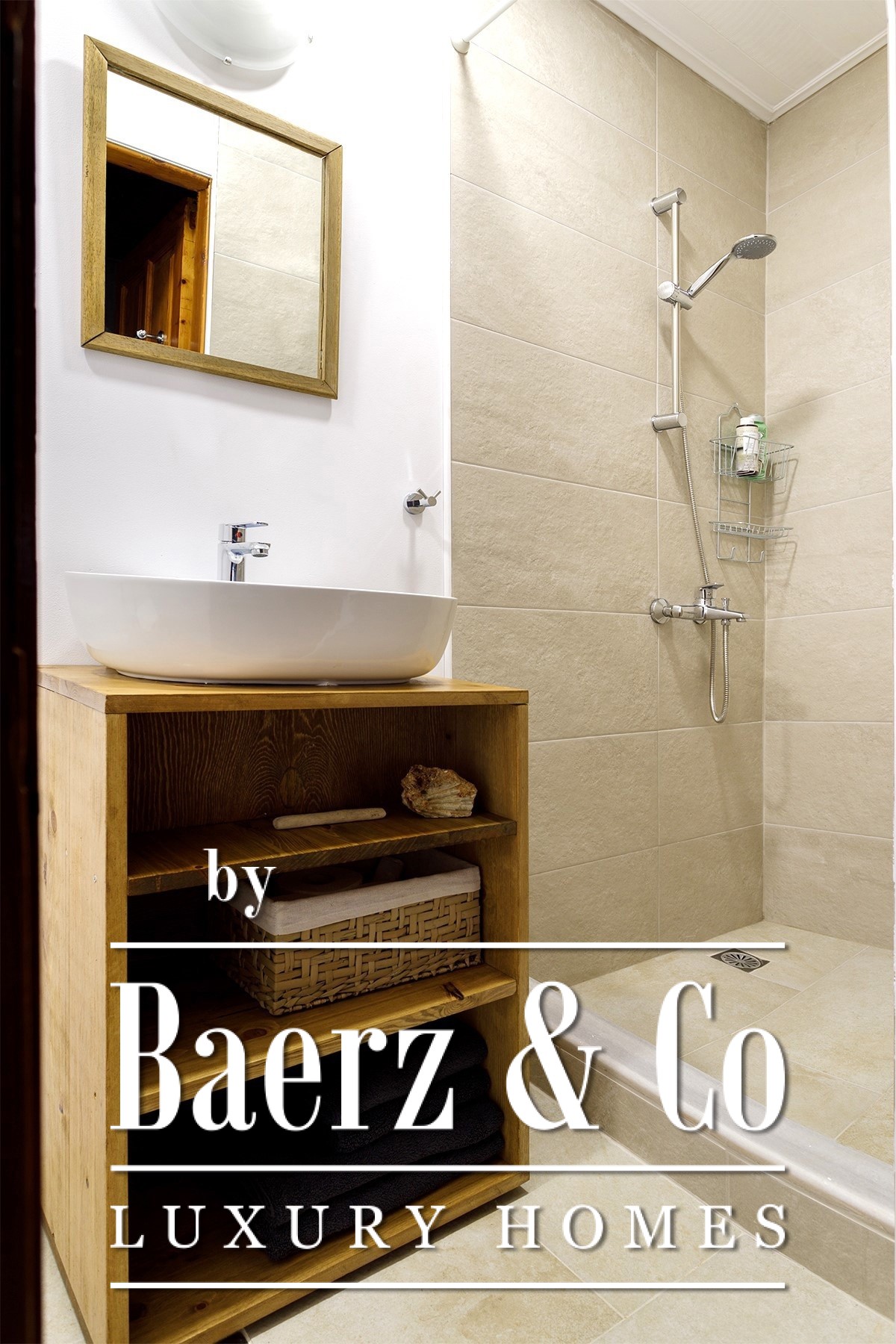 of 151 sq.m., consists of two spacious bedrooms on the ground floor, each with its own bathroom. The first floor includes the kitchen, dining area, and living room, all bright and with direct access to balconies that provide stunning views of the surrounding area. The third house, with an area of 124.7 sq.m., includes a basement with a separate entrance, used as a laundry room and storage. The first floor comprises two bedrooms, each with a private bathroom, as well as a living room and kitchen. The outdoor terraces and BBQ area create the perfect setting for family gatherings or social events. All houses are fully equipped and furnished, featuring large terraces and balconies. The plot offers ample parking space and is filled with trees. This property uniquely combines privacy, luxury, and natural beauty.