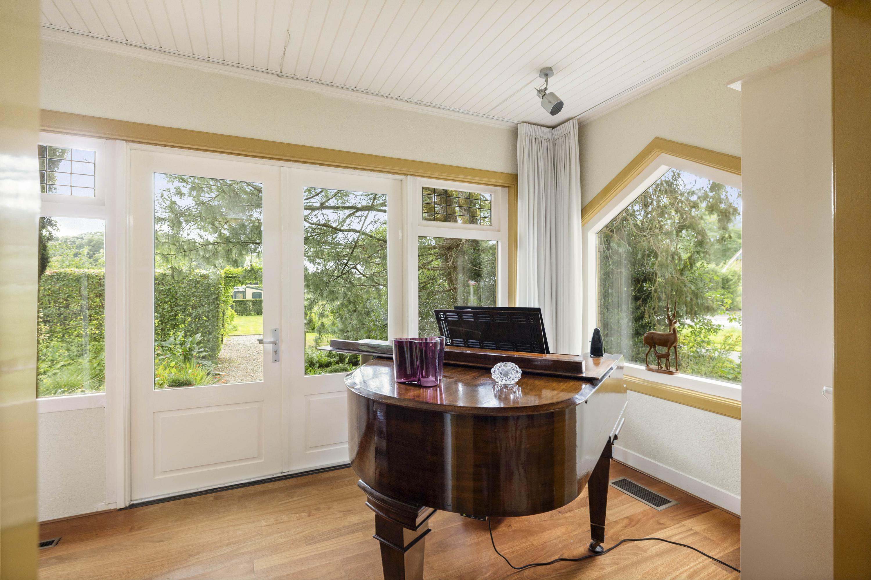 The house is surrounded by a beautiful garden. There is a wooden garage with an adjoining carport, providing space for two cars to be parked in the dry. Garden equipment can also be stored here neatly and sheltered. Due to the orientation of the house, there is a lovely sun terrace behind the property. There are cosy seating areas scattered throughout the garden. The plants are diverse, colourful and carefully chosen, making it a real treat for the senses. There are beautiful sightlines, a small flock of chickens in a cosy run and the dahlias can quietly awaken from their hibernation in the greenhouse. There are two water features and you will enjoy a great deal of privacy here thanks to the secluded location, the man-sized hedges and the mature trees.