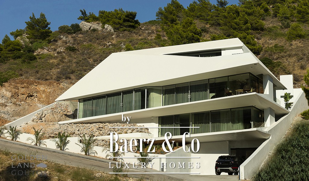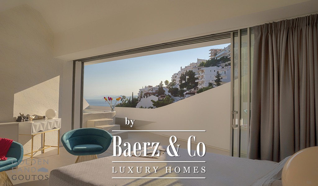 The great advantage of this residence is its amazing location; it is ideally situated in the Panorama, in Voula, a premium neighborhood of the Athenian Riviera. At the same time the residence is blessed with privacy because it is seated on a hill, on a quiet residential street. Furthermore, it is just a 7-minutes drive (2.8 km) to the beach, a 6-minute drive to Vasileos Pavlou Avenue (the center) and less than a 10-minute drive to Glyfada. Moreover, the spectacular view of this residence, in one of the most posh neighborhoods in Voula, can take your breath away. Almost all the rooms of this house overlook the sea and the whole Athenian Riviera.