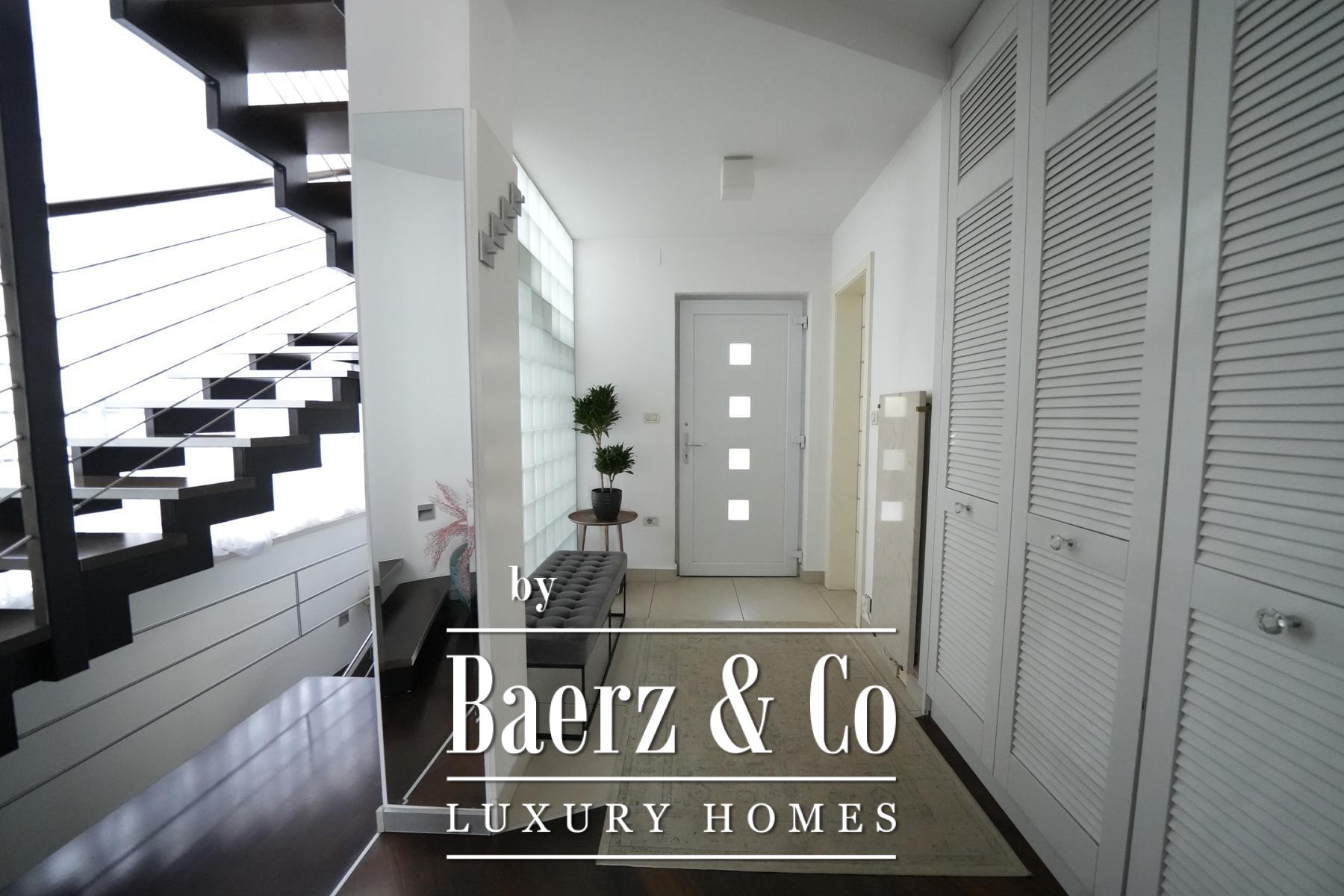 House Zadar with pool and sea view presents a composed retreat in Draženica, offering measured luxury on a 777 m² plot. This property unfolds over 294 m², with its architecture shaped by clarity and practical sophistication. The ground floor holds a bedroom, two bathrooms, a kitchen, dining space opening to the garden, and functional zones including a boiler and storage room. On the first floor, the entrance leads to a wardrobe, well-appointed kitchen, dining area, living room of 33.50 m², a guest toilet, and two balconies measuring 6.10 m² and 8.63 m², all framed by natural light and open views.