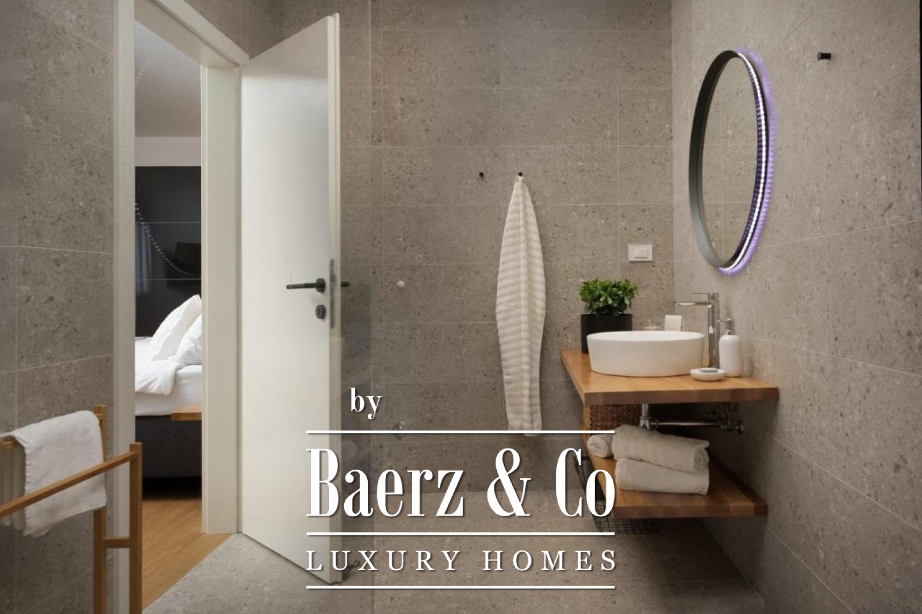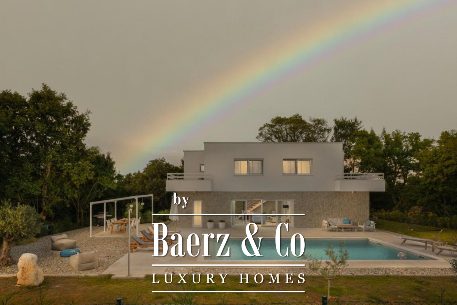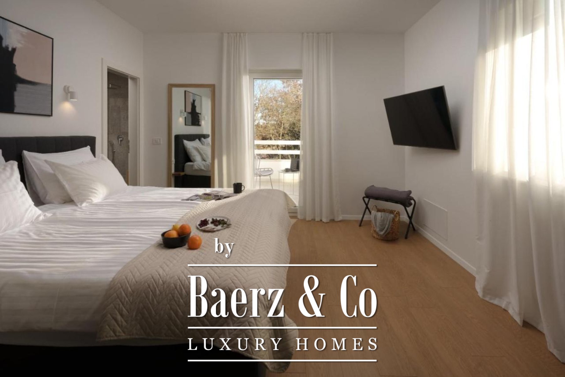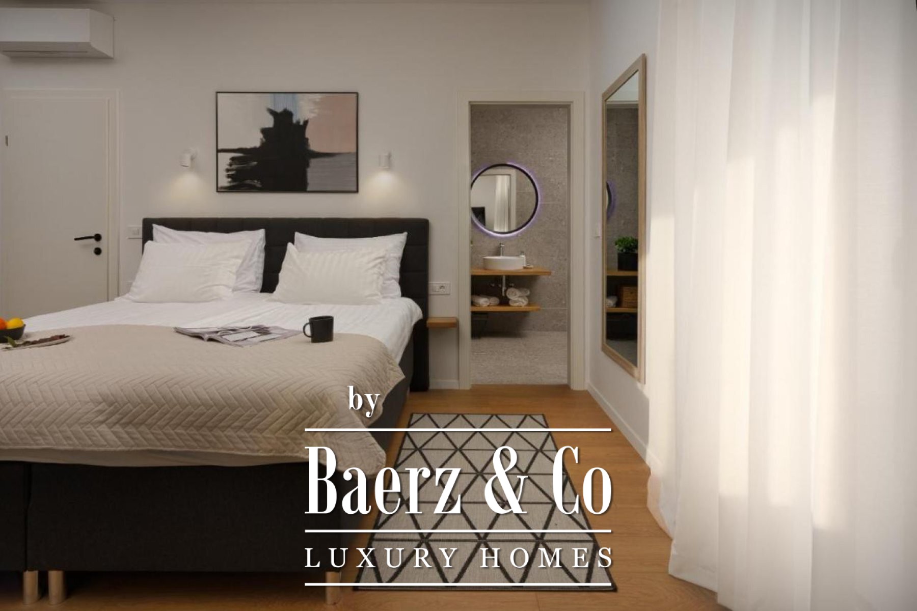 its own bathroom, equipped with high-quality Italian sanitary ware, high-quality parquet in all rooms, as well as air conditioning in each room and two balconies with a view of the pool and nature.