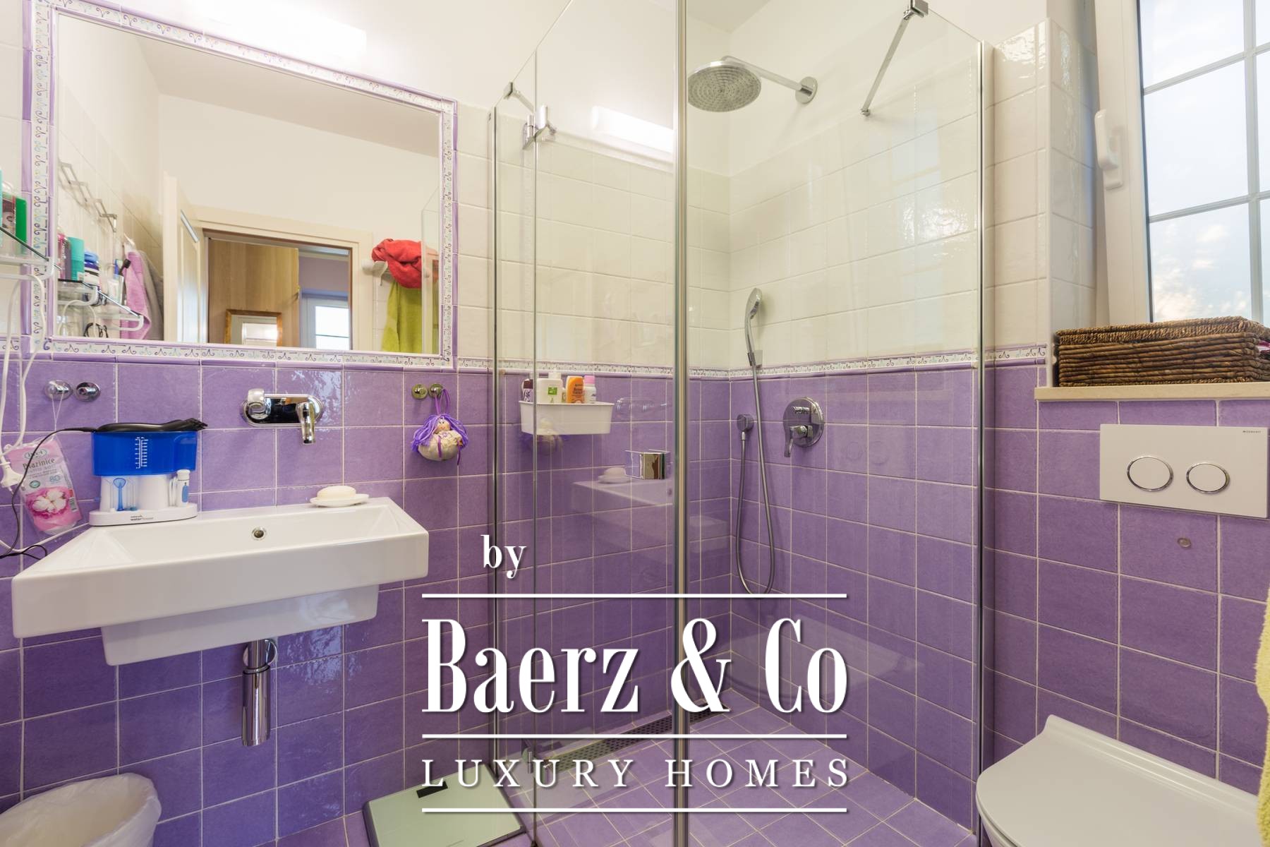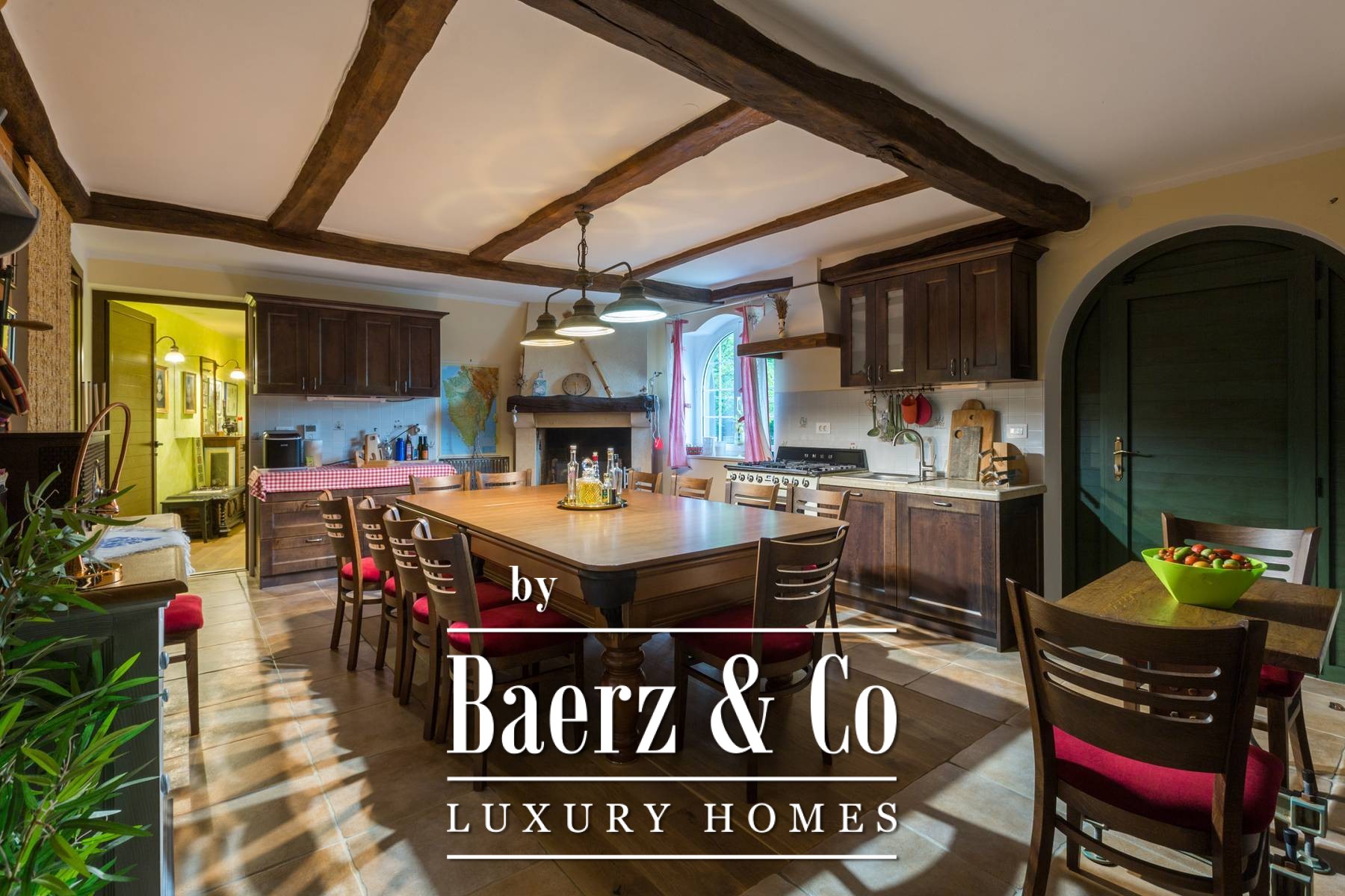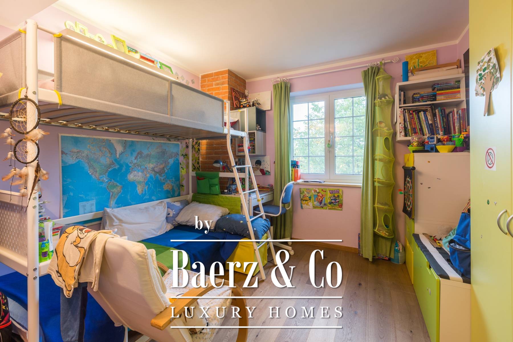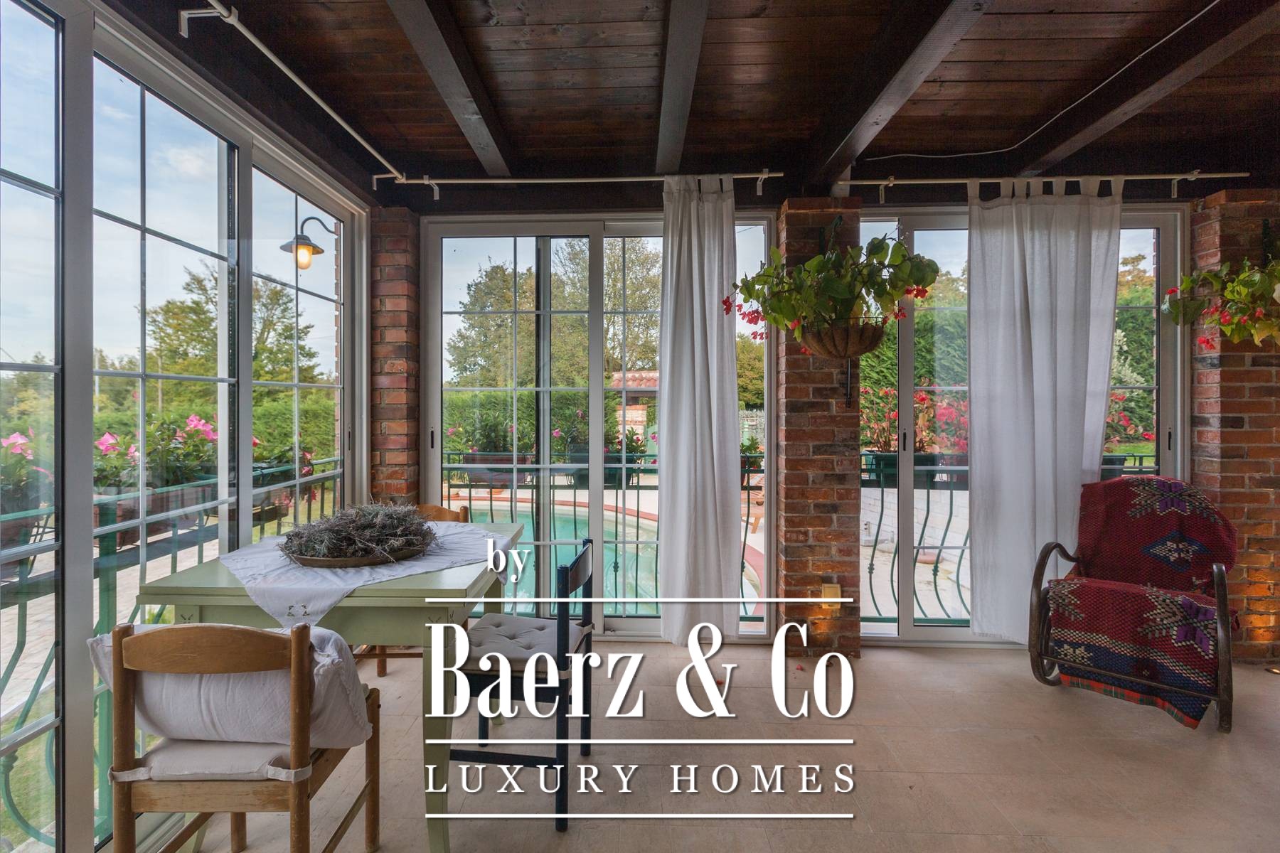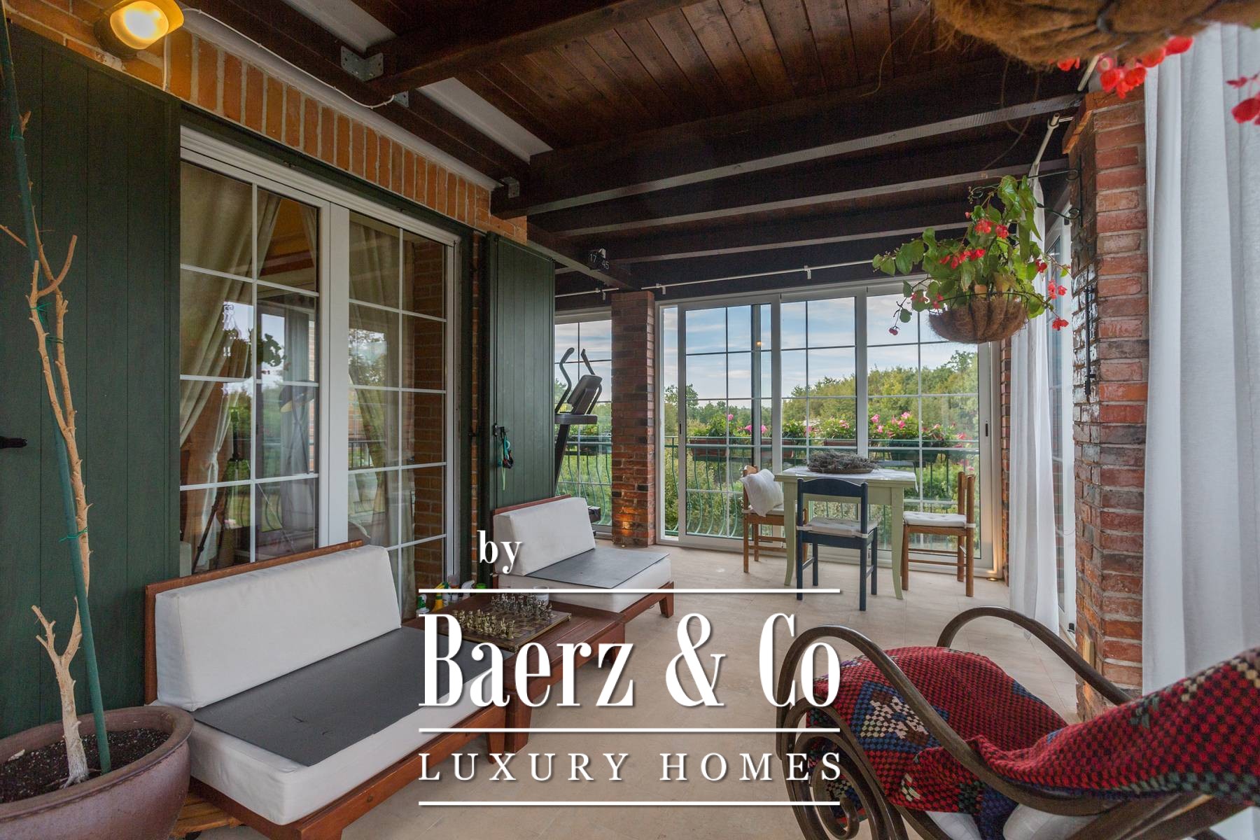 Žminj surroundings, a beautiful villa of 314 m2 on a plot of 1,720 m2. The inspiration of this estate is British architecture, the early period of the 20th century, and at first sight of this beautiful villa it is clear that it is a kind of "Unicorn" in the offer of Istrian real estate. This villa has a timeless design. It has an ideal location, it is located at the end of a quiet village where you can enjoy walking in the forest area, and yet a few minutes' drive from the market, school, restaurants, pharmacy. Also, quick access to the highway leads to major destinations such as Pula, Rovinj, Poreč, Rijeka or Trieste in about 30 minutes' drive. The house is basically on two floors. The residential part is located on the upper floor or on the ground floor. By entering the house, we access a large space with an open floor plan and high ceiling that unites the living room and the kitchen. Then we continue into the hallway with three