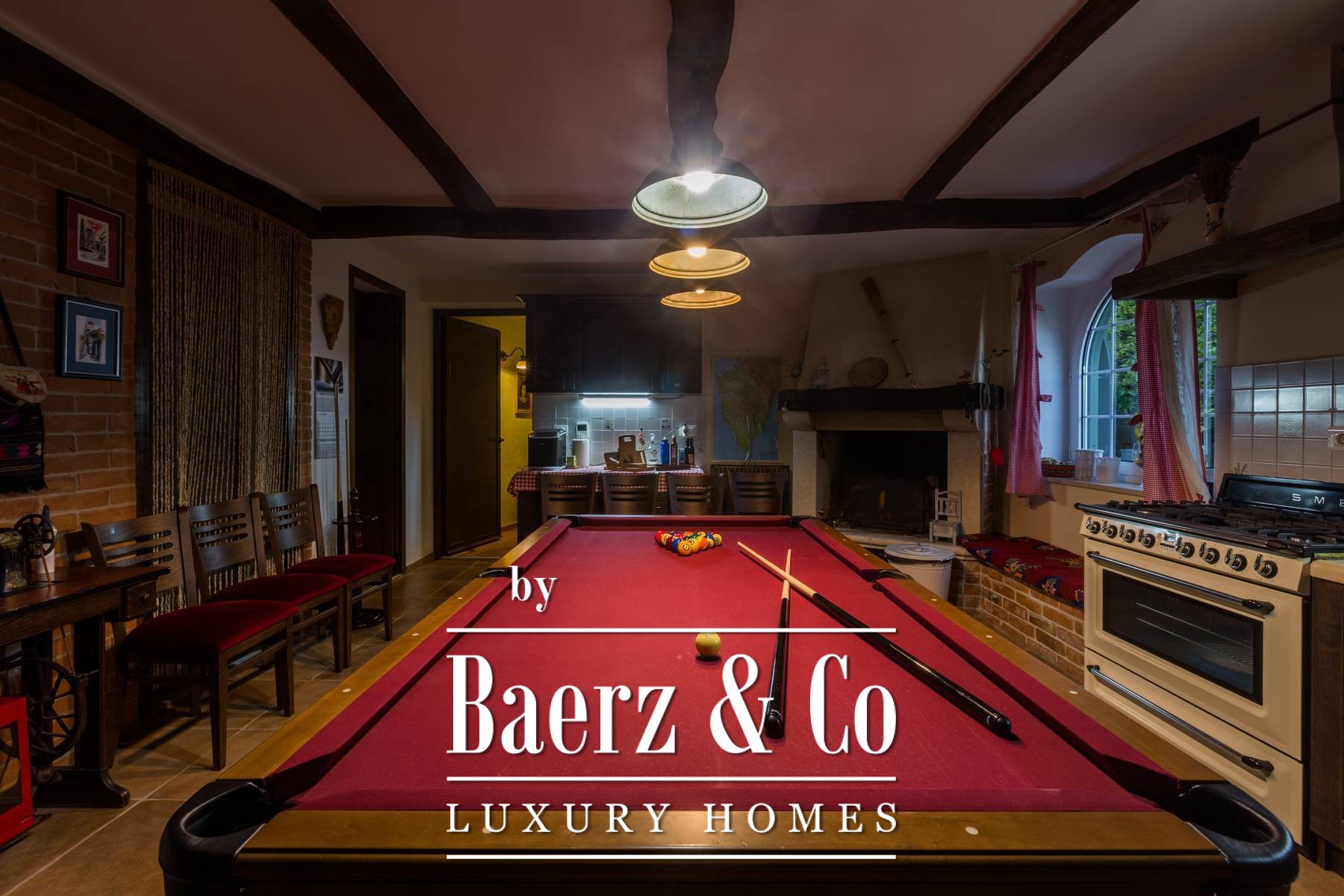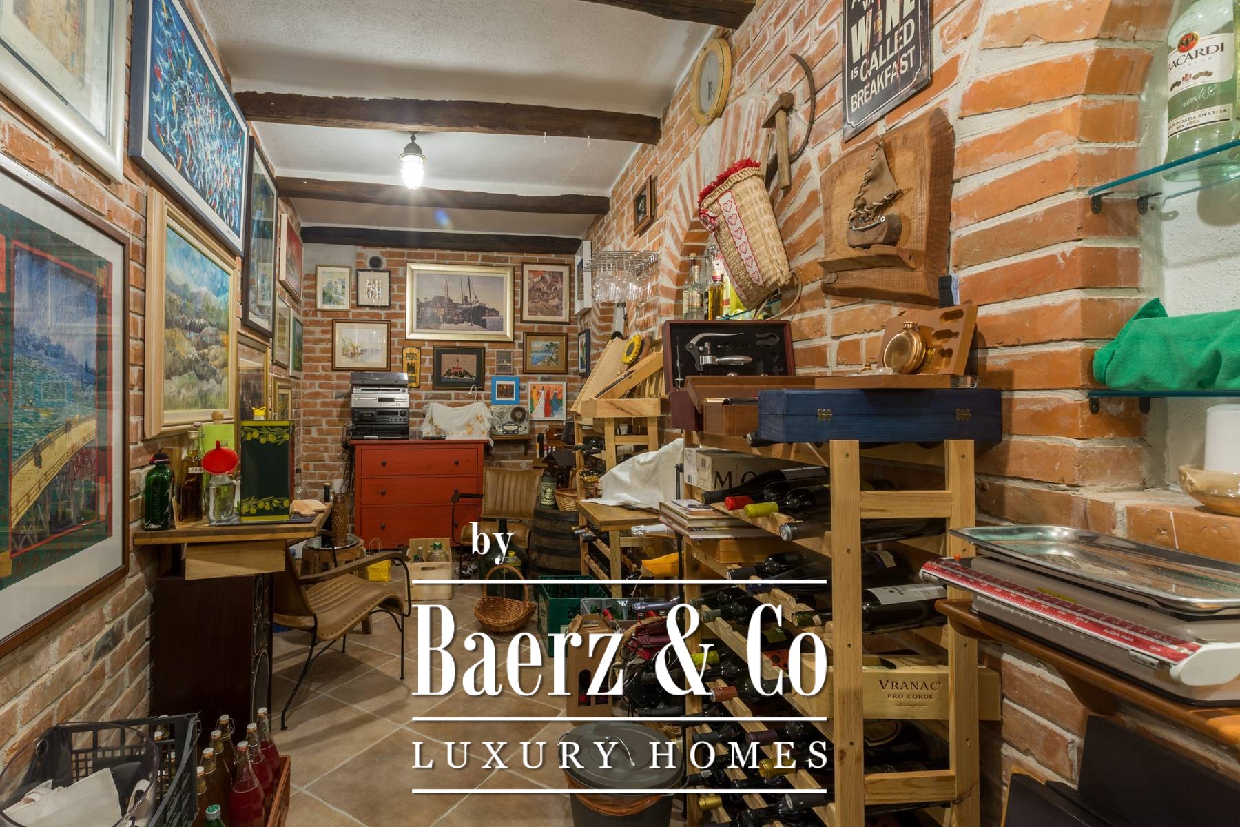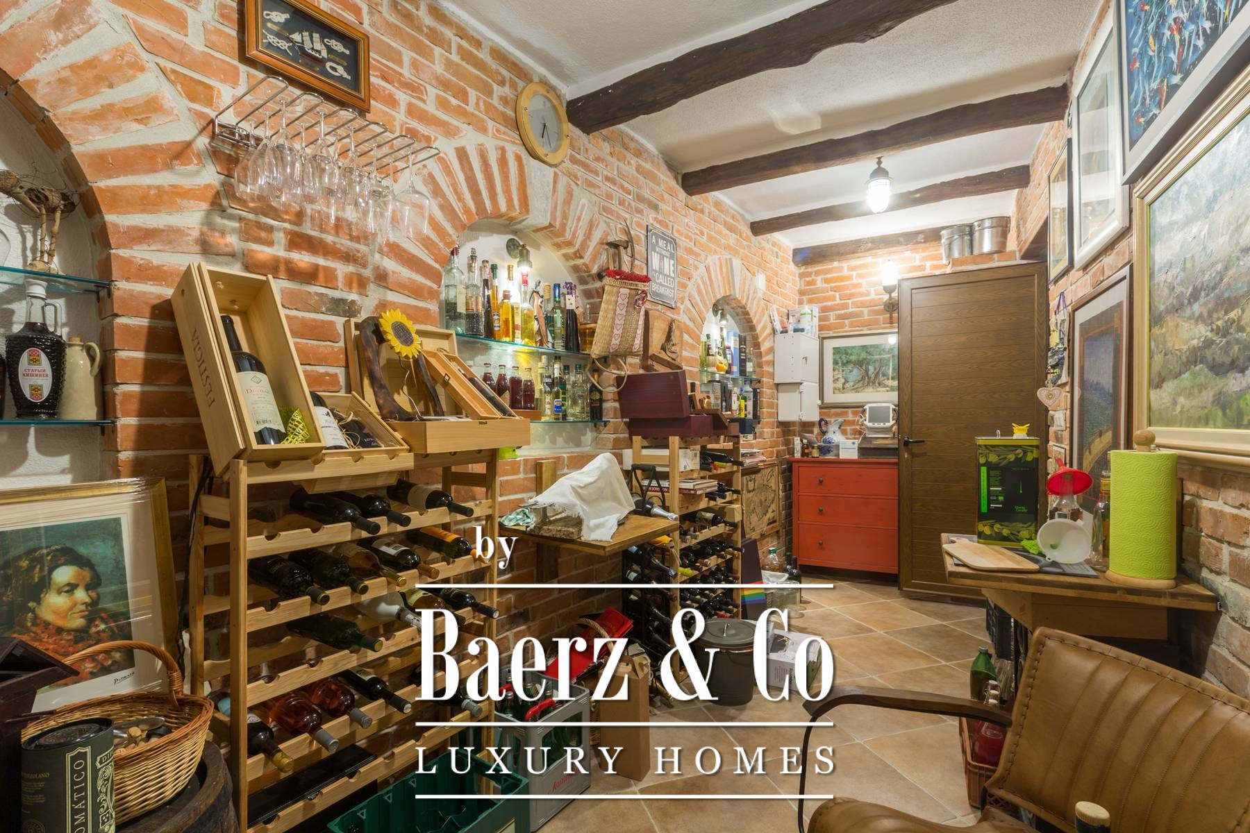 bedrooms and a large shared bathroom. Master Badrom has its own bathroom, wardrobe and loggia with a view of the beautiful property. On the next floor, or basement, there are two offices, in this case an audio studio and a library. Large tavern with fireplace, boiler room, utility room, wine cellar, workshop, garage for two vehicles with automatic and remote doors, and engine room with pool equipment. This villa never ceases to delight its visitors, so feel free to contact us for a viewing. Some of the features are: solar panels for hot water, hot water storage pump, heat pump, underfloor heating and fan coilers, rainwater storage tank from which filtered water is used in the house (the house is also connected to the water mains), central vacuum cleaner , high-quality parquet, brick facade, heated infinity pool, custom-made furniture, central sound system, garbage disposal, Mediterranean garden... More information on request
