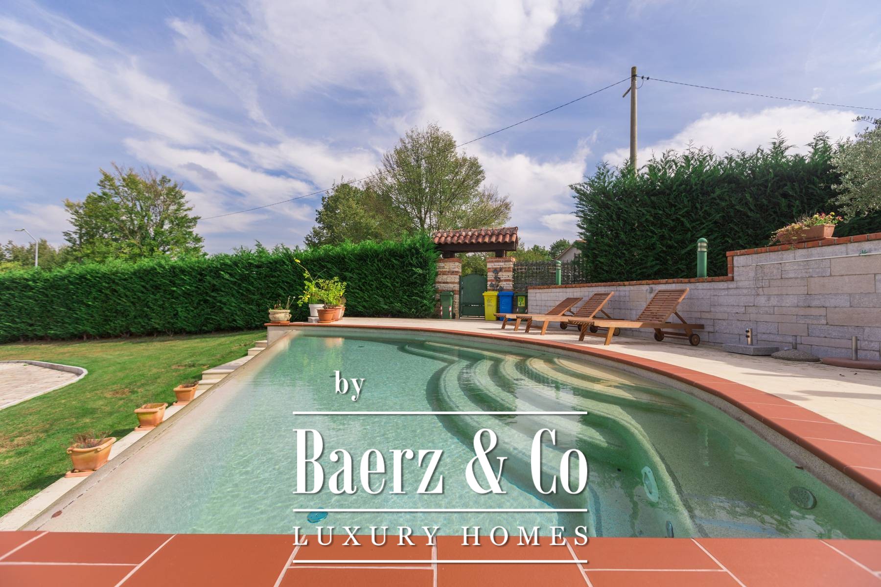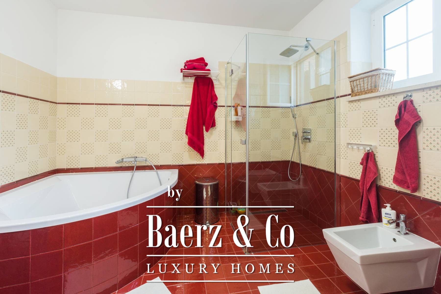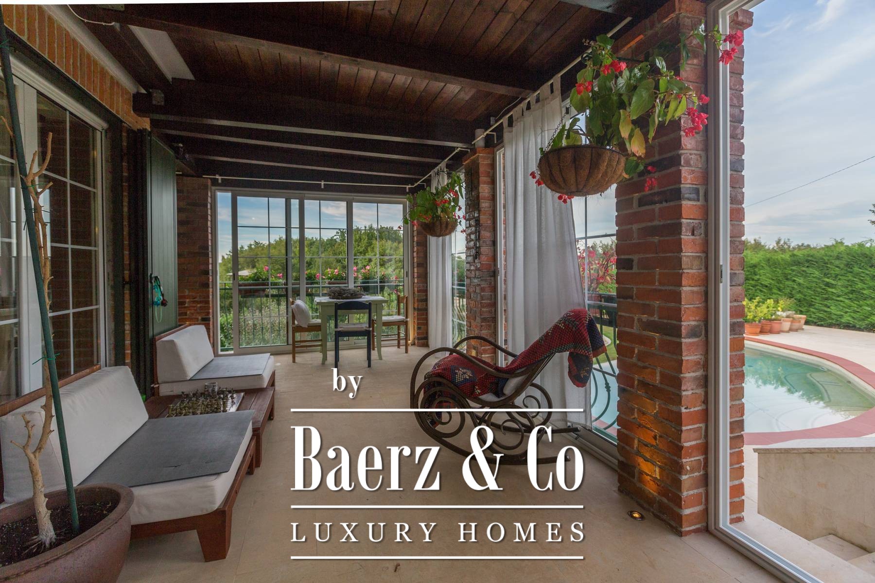 bedrooms and a large shared bathroom. Master Badrom has its own bathroom, wardrobe and loggia with a view of the beautiful property. On the next floor, or basement, there are two offices, in this case an audio studio and a library. Large tavern with fireplace, boiler room, utility room, wine cellar, workshop, garage for two vehicles with automatic and remote doors, and engine room with pool equipment. This villa never ceases to delight its visitors, so feel free to contact us for a viewing. Some of the features are: solar panels for hot water, hot water storage pump, heat pump, underfloor heating and fan coilers, rainwater storage tank from which filtered water is used in the house (the house is also connected to the water mains), central vacuum cleaner , high-quality parquet, brick facade, heated infinity pool, custom-made furniture, central sound system, garbage disposal, Mediterranean garden... More information on request