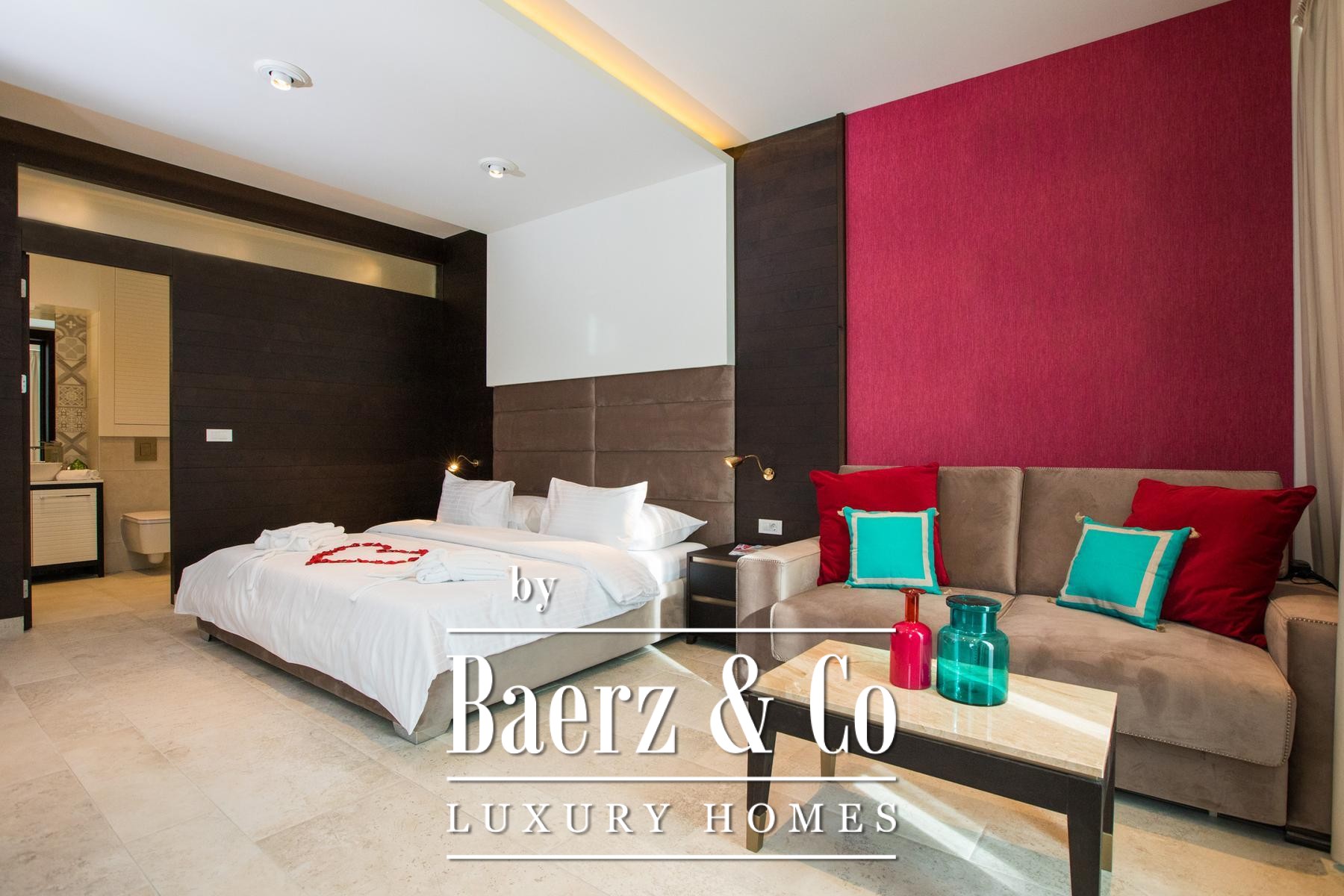 Interiors throughout the estate are appointed with high-quality furnishings and equipment, reflecting a commitment to comfort and refinement. Altogether there are twelve bedrooms and twelve bathrooms, accommodating family life or discerning guests seeking privacy. The atmosphere is shaped by light, proportion and curated materials, each space quietly engineered for ease and lasting appeal.